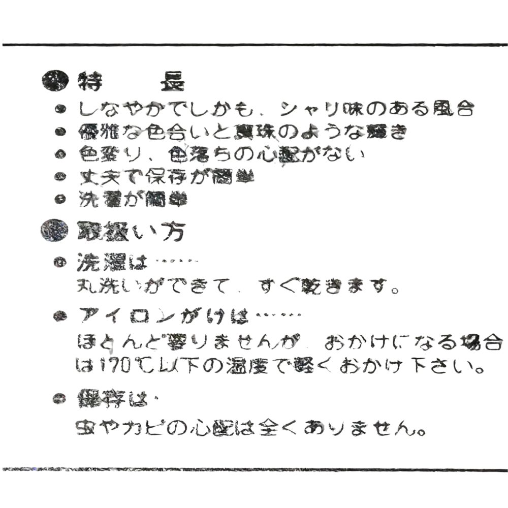 素材: ポリエステル 35% アセテート 45% レーヨン 20%