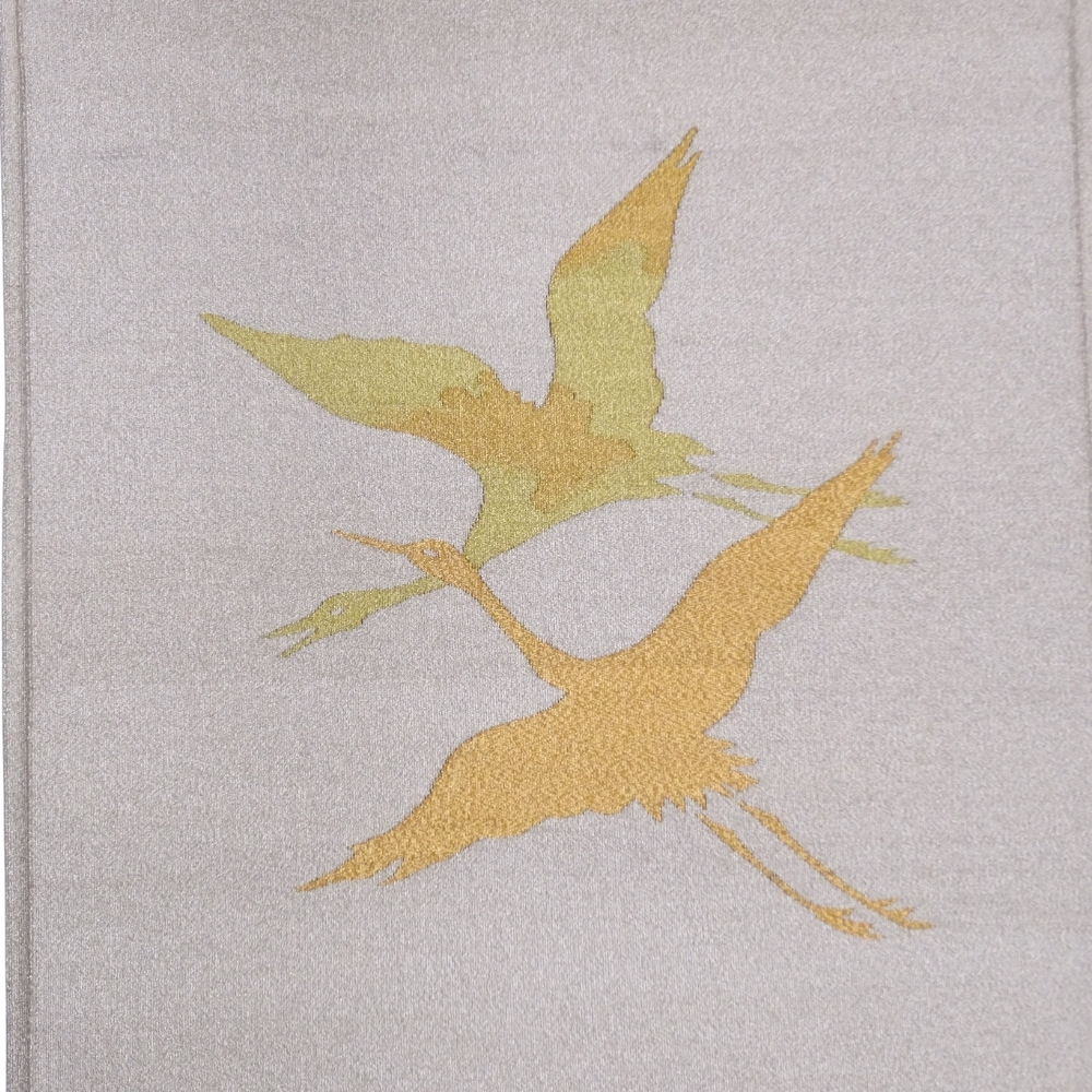 2色の濃淡で表現された鶴が、控えめながらも華やかな存在感を放ち、様々なお着物を引き立ててくれます。