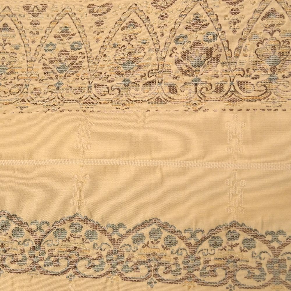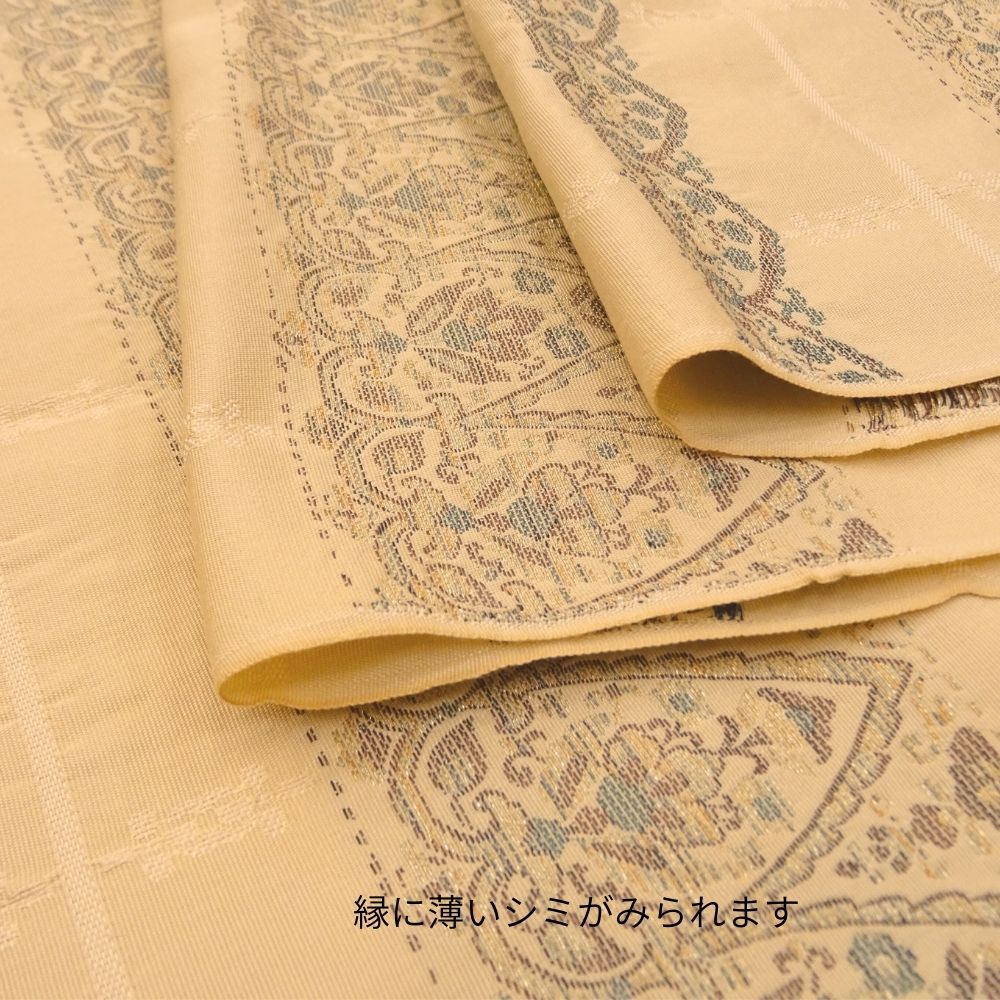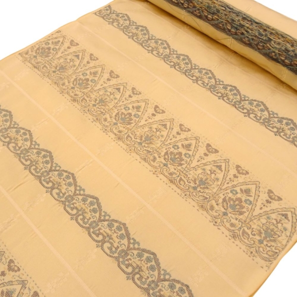 名古屋帯反物 正絹 リユース 未仕立て 中古 洒落帯 ベージュ 華紋柄 006-1(8050-00280)