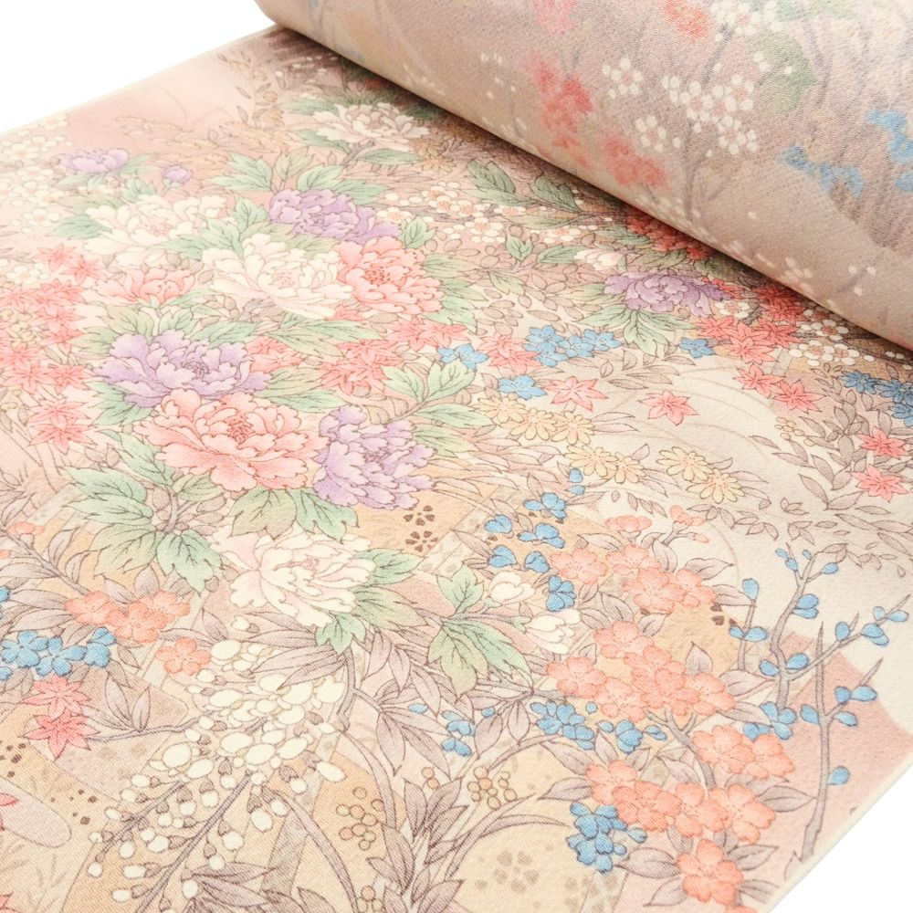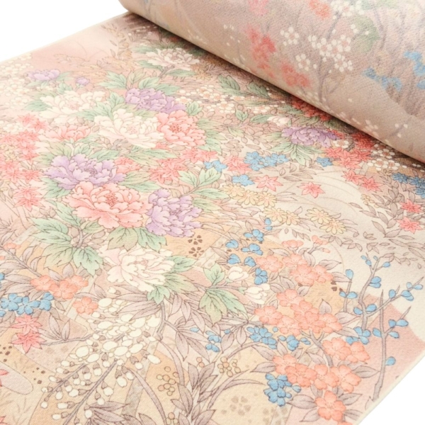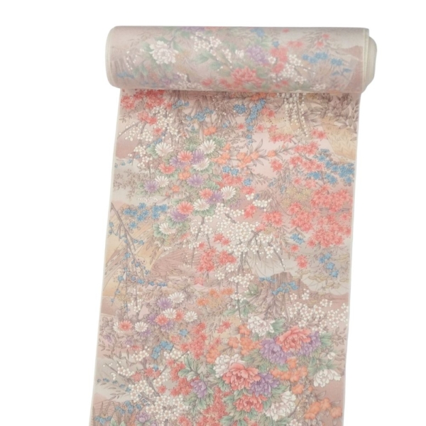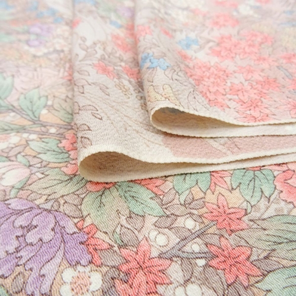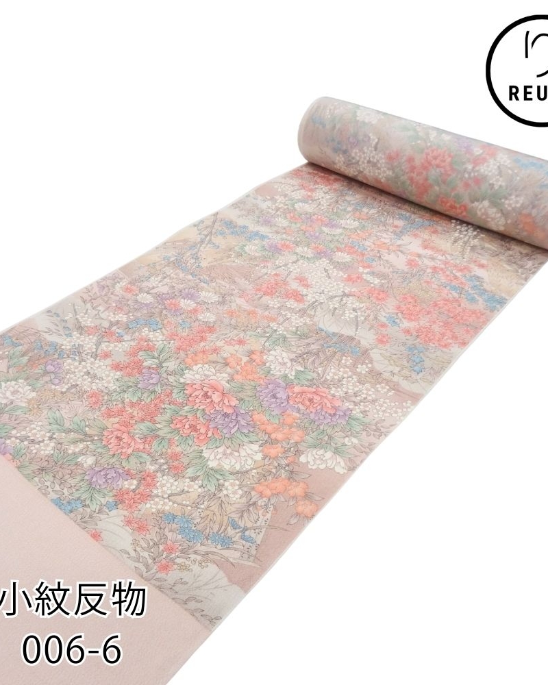 小紋反物 正絹 リユース 中古 丹後ちりめん 華やか草花柄 006-6K(8050-00285)★