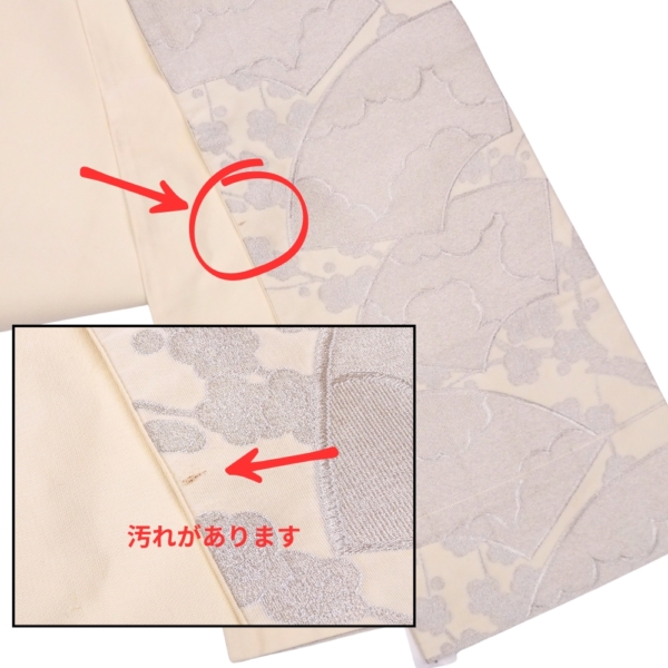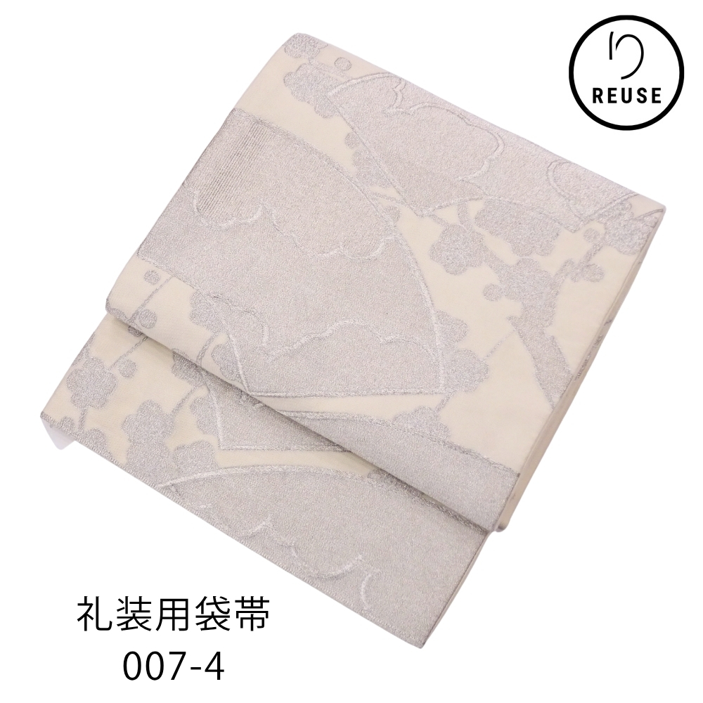 礼装用袋帯 正絹 リユース 中古 白地 銀糸織り 扇面に梅 007-4K(8050-00316)
