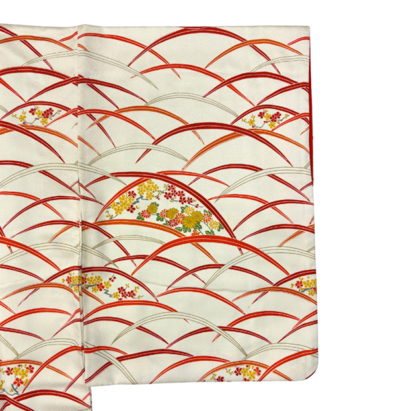 流れるような曲線が描かれた露芝の間には、丸みのある小花柄が散りばめられ、華やかさを添えています。