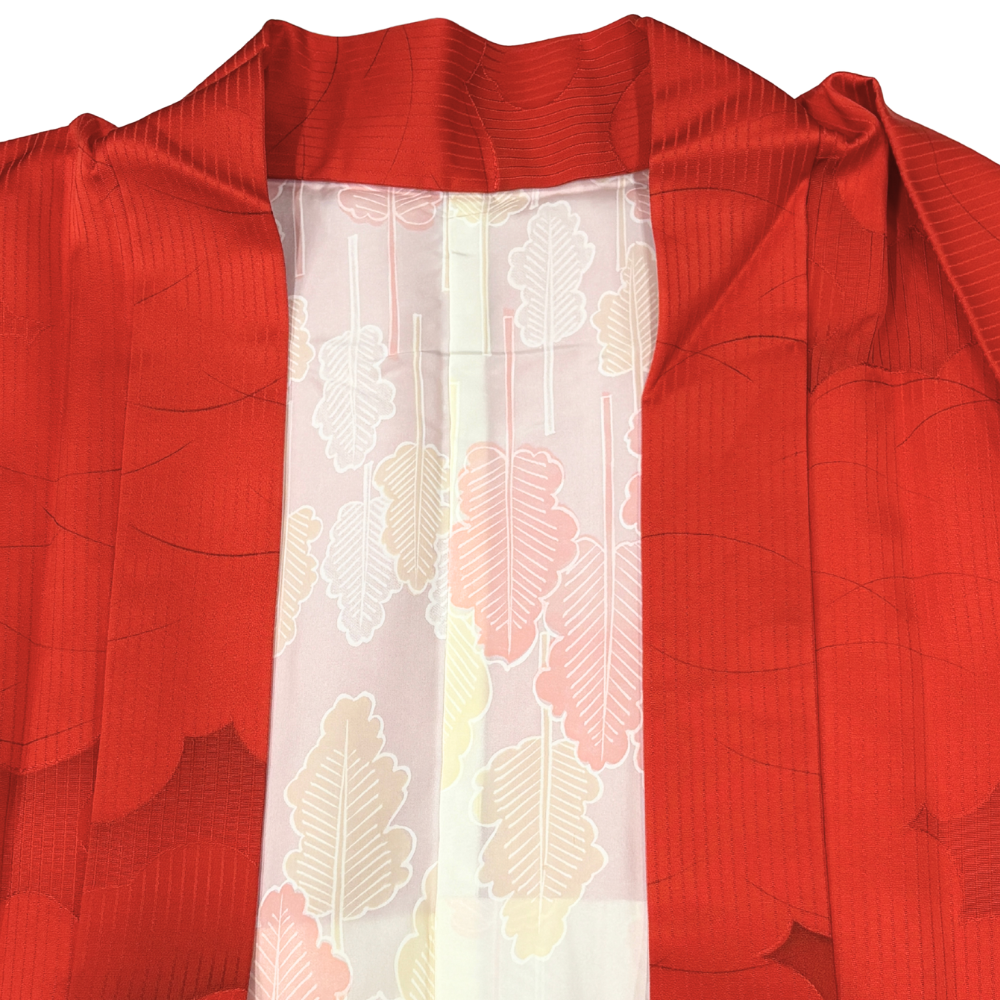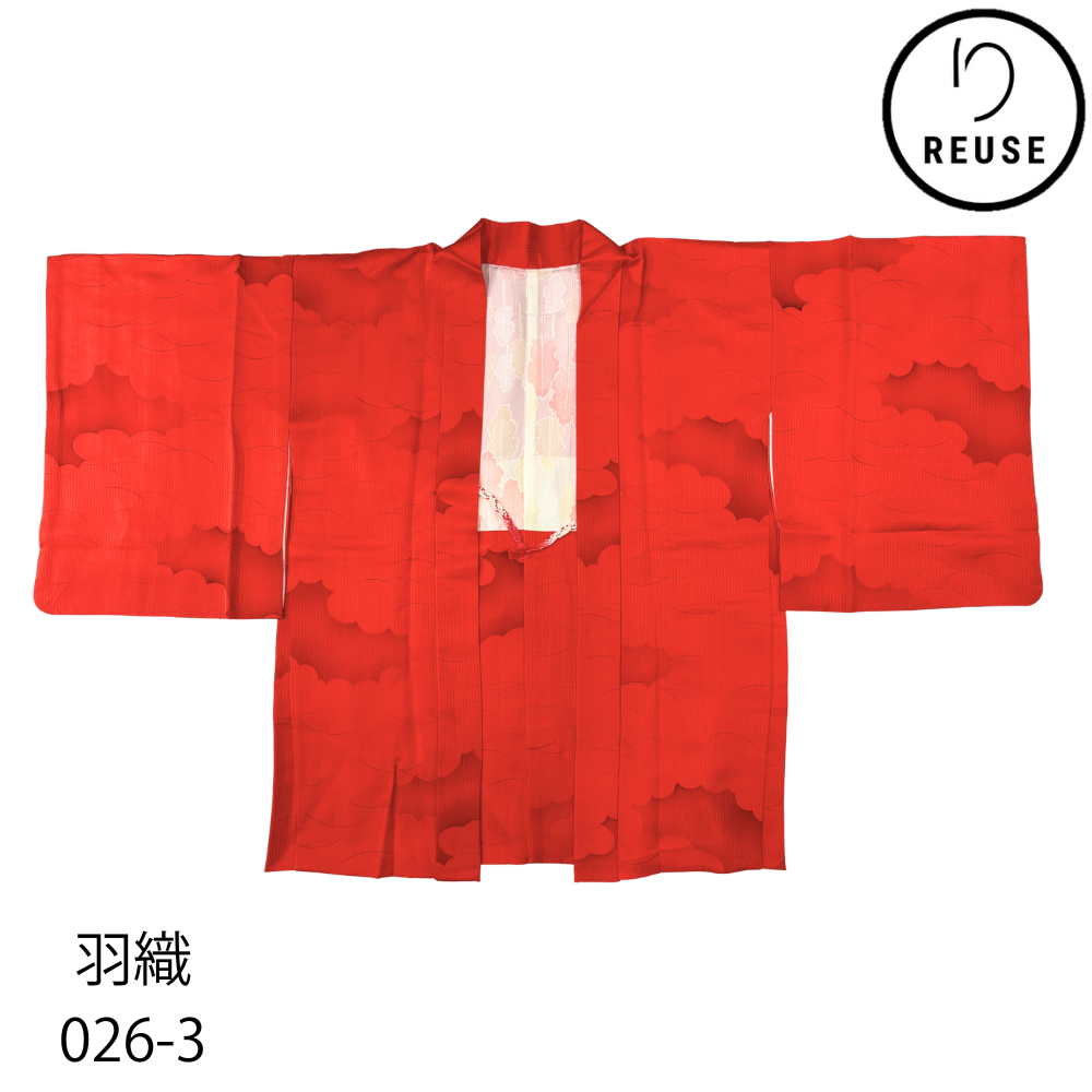 羽織 袷 正絹 リユース 中古 雲どり文様 鮮やかな赤地 026-3R(8050-00363)
