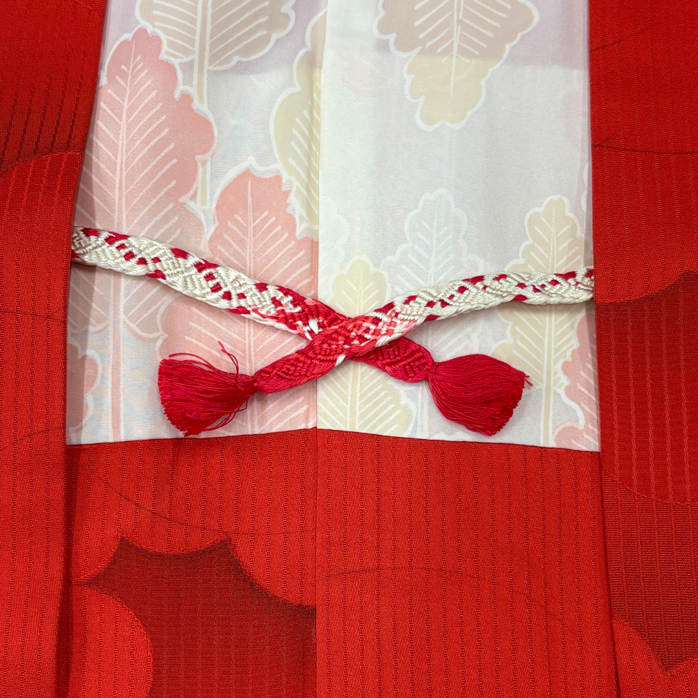 紅白の組み紐の羽織紐が付属しており、到着後すぐにご着用いただけます。