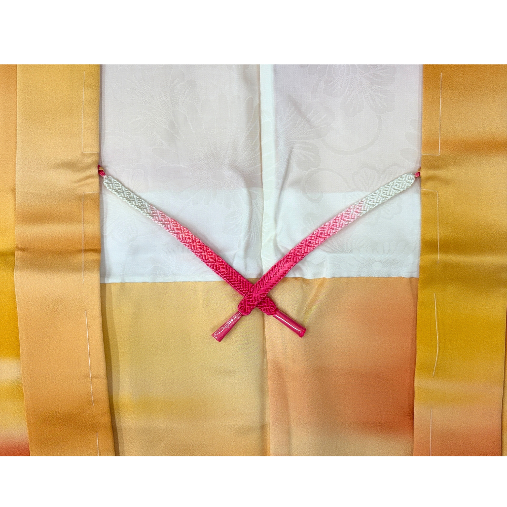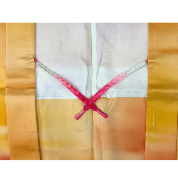 ピンクから白へのぼかしが効いた組紐が、羽織の内側から覗くアクセントになります。