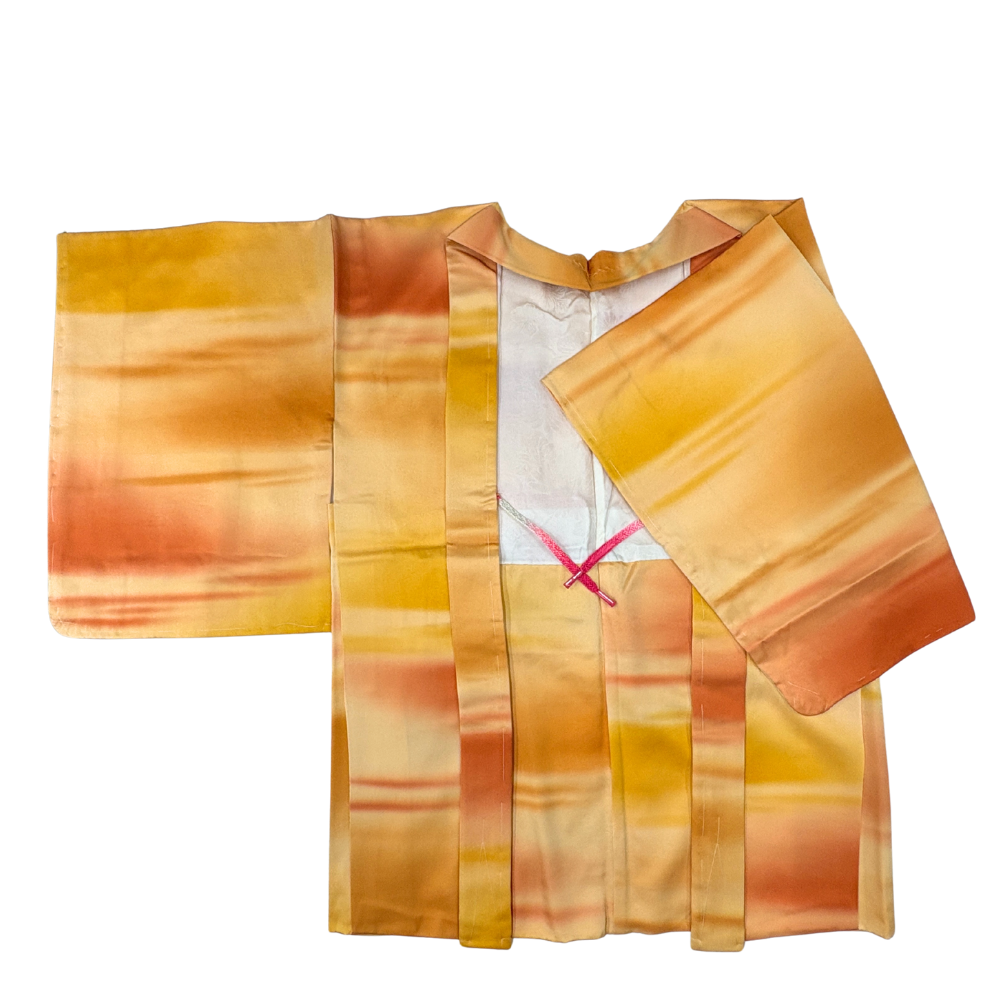 羽織 袷 正絹 リユース 中古 赤とオレンジの夕焼け模様 026-4R(8050-00364)