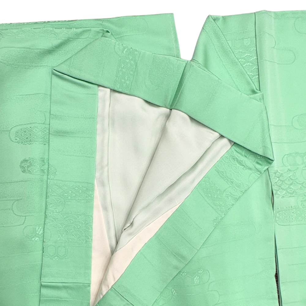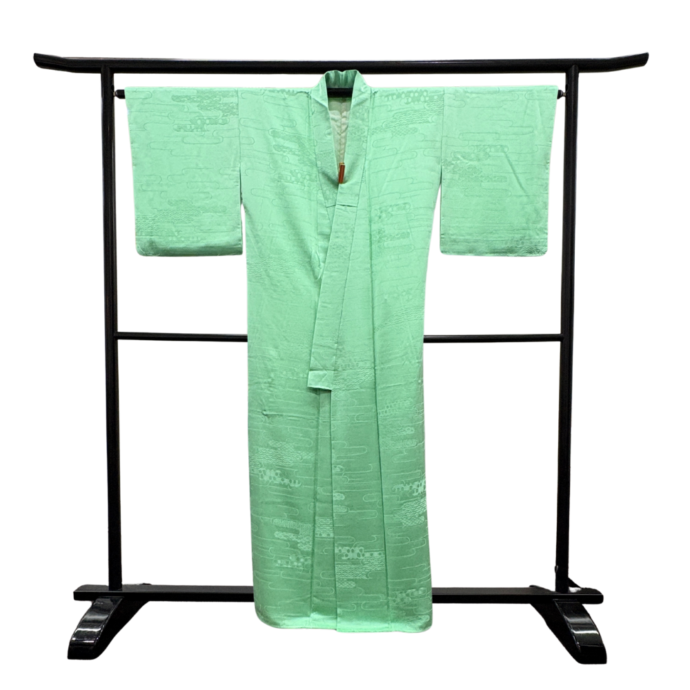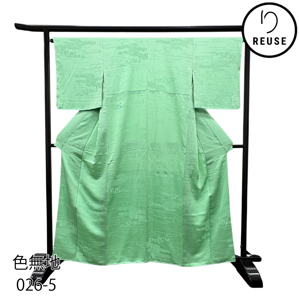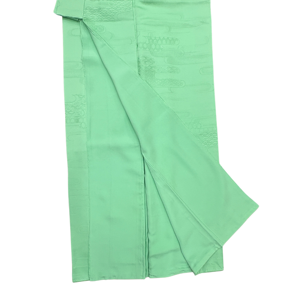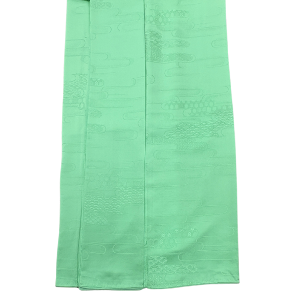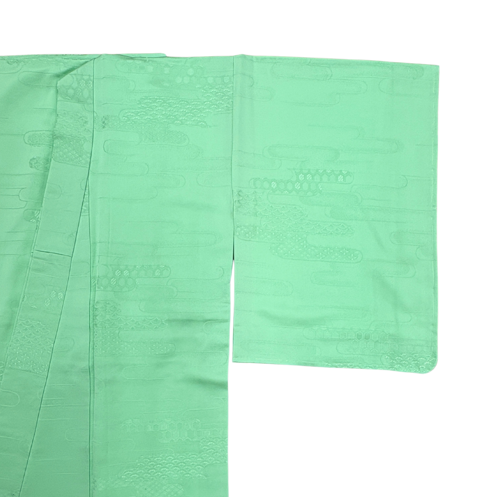 色無地 袷 正絹 リユース 中古 エ霞の地紋入り しつけ糸付き ミントグリーン 026-5R(8050-00365)