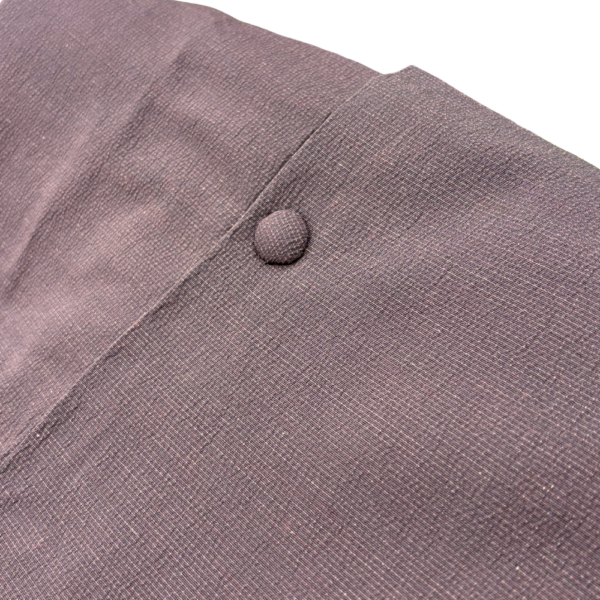 落ち着いた暗めの赤紫色(小豆色や葡萄色のような色合い)に、細かな縞模様のような織りが入った、表情豊かな生地です。