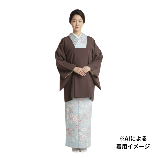 着用イメージのように、明るい色の着物や柄の着物と合わせることで、コートのシックな色が全体を引き締め、上品で洗練されたコーディネートが完成します。だけます。