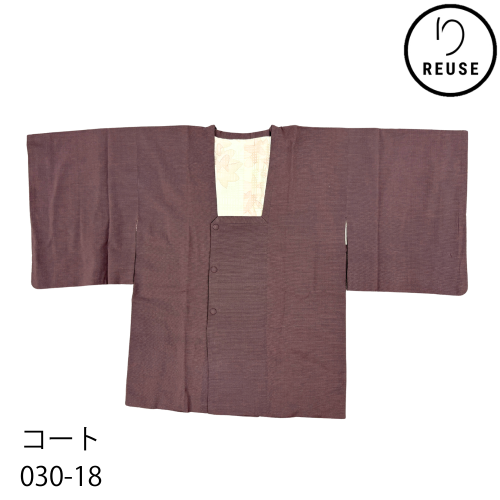 道行コート コート 袷 正絹 リユース 中古 暗めの赤紫系 無地 030-18R(8050-00392)