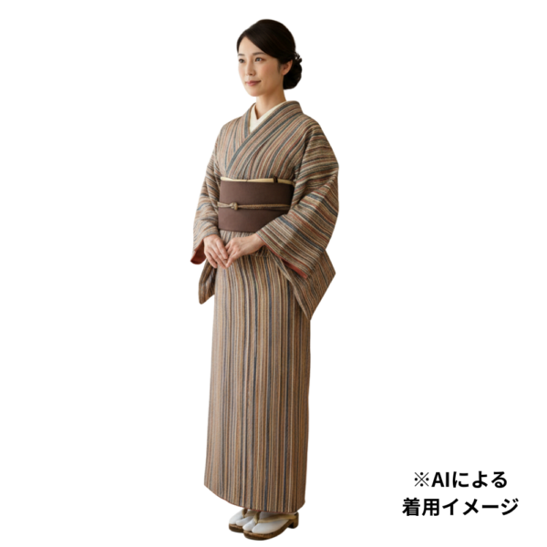 細やかな縦縞模様は、すっきりとした印象を与え、着姿をより美しく見せてくれます。
