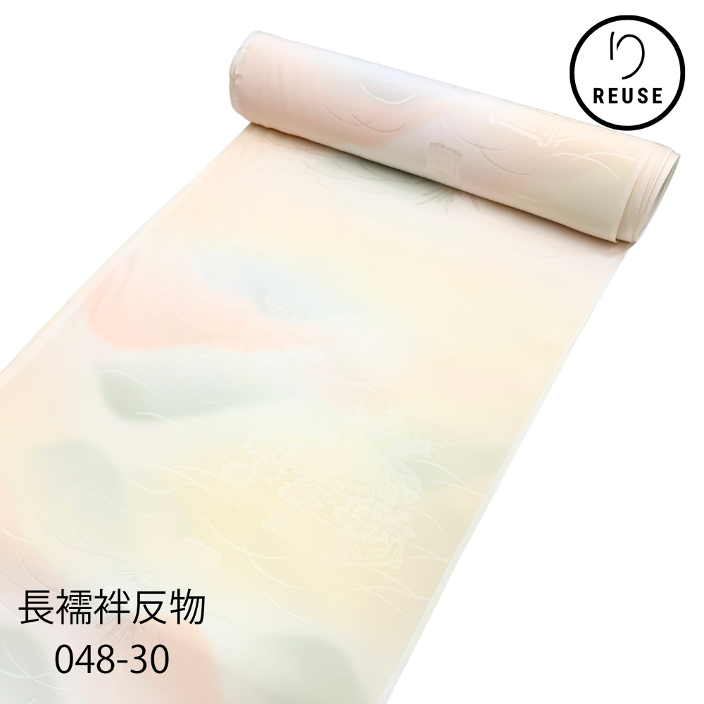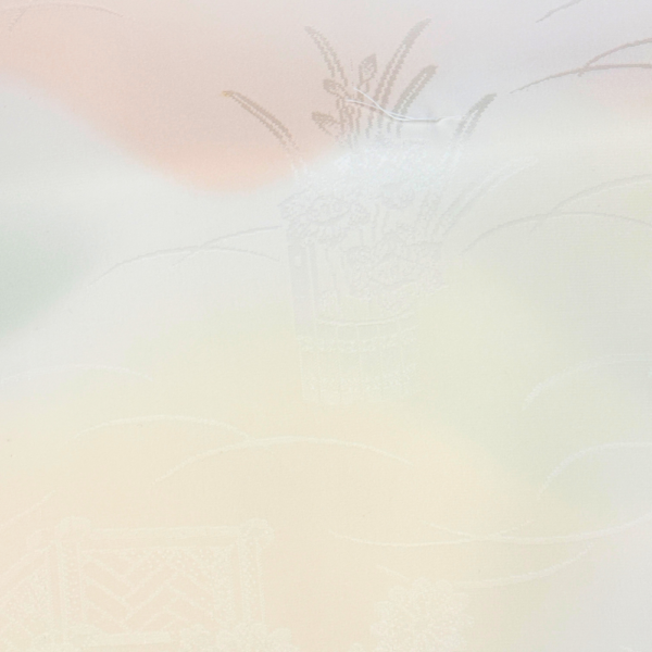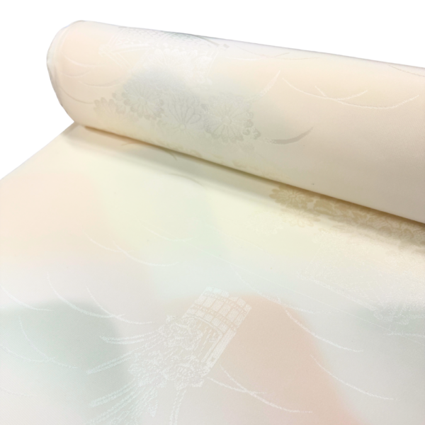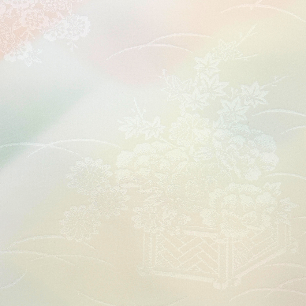 淡いアイボリーを基調に、ピンク、イエロー、グリーンの柔らかなぼかしが美しく溶け合う、長襦袢用の反物です。