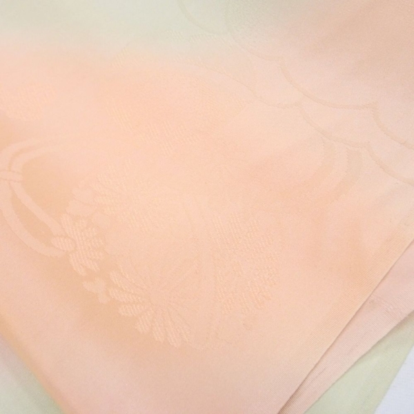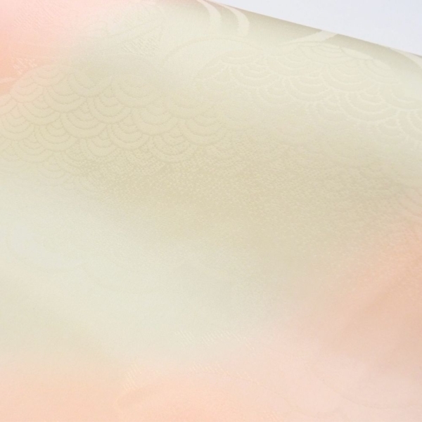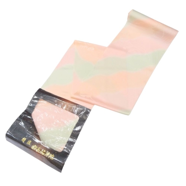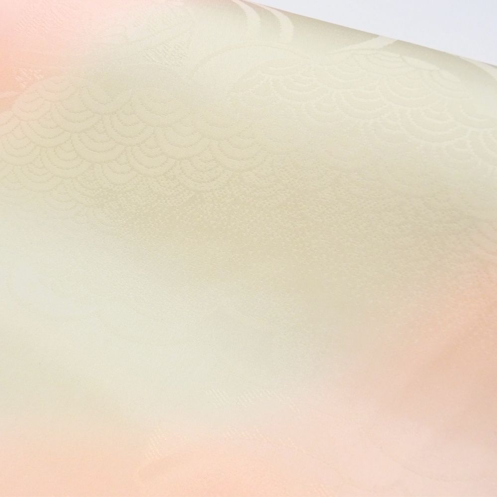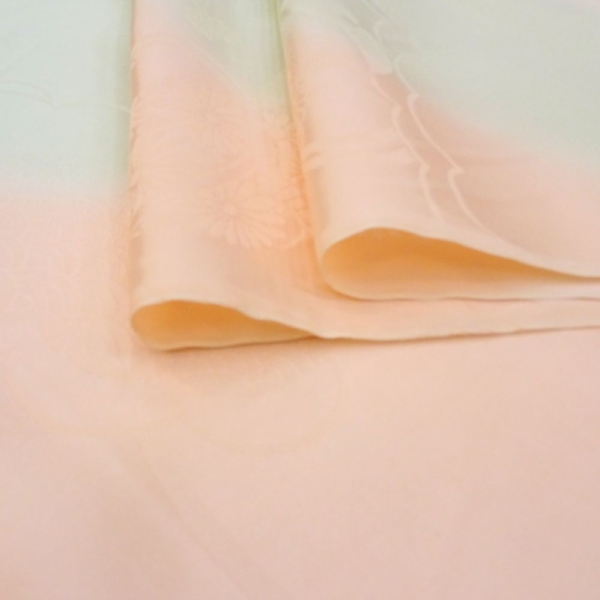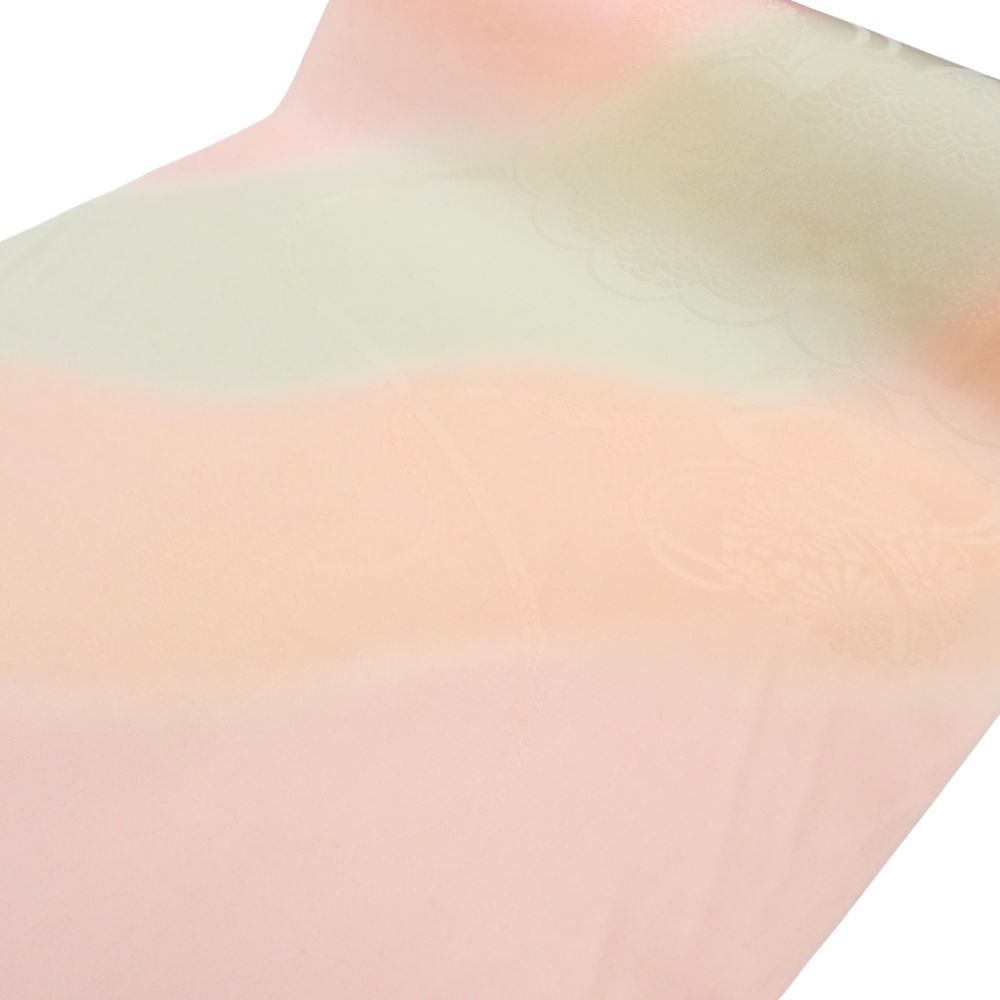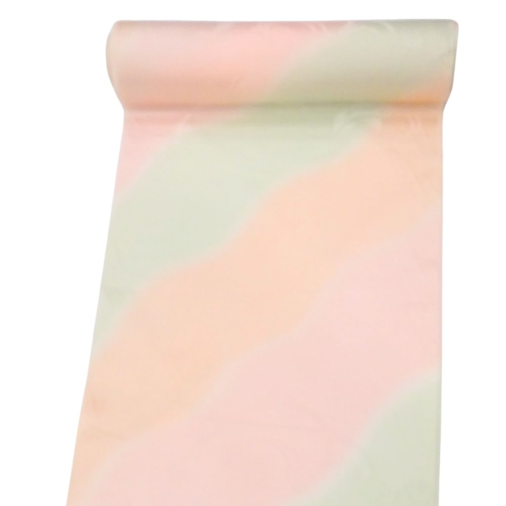 しっとりと肌なじみの良い「特選 精華地」を使用した、正絹の長襦袢反物です。 淡く優しいピンクと薄緑のぼかし染めが施されており、袖口や裾からちらりと覗いた際に、非常に上品で華やかな印象を与えます。