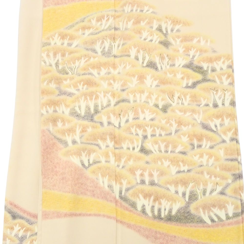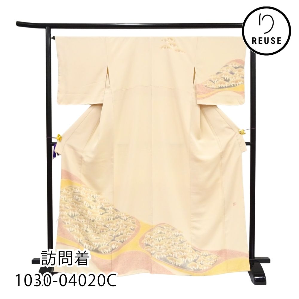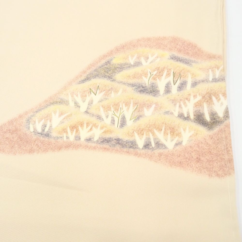 訪問着 袷 正絹 リユース 中古 薄いベージュ 素描 (1030-04020C)