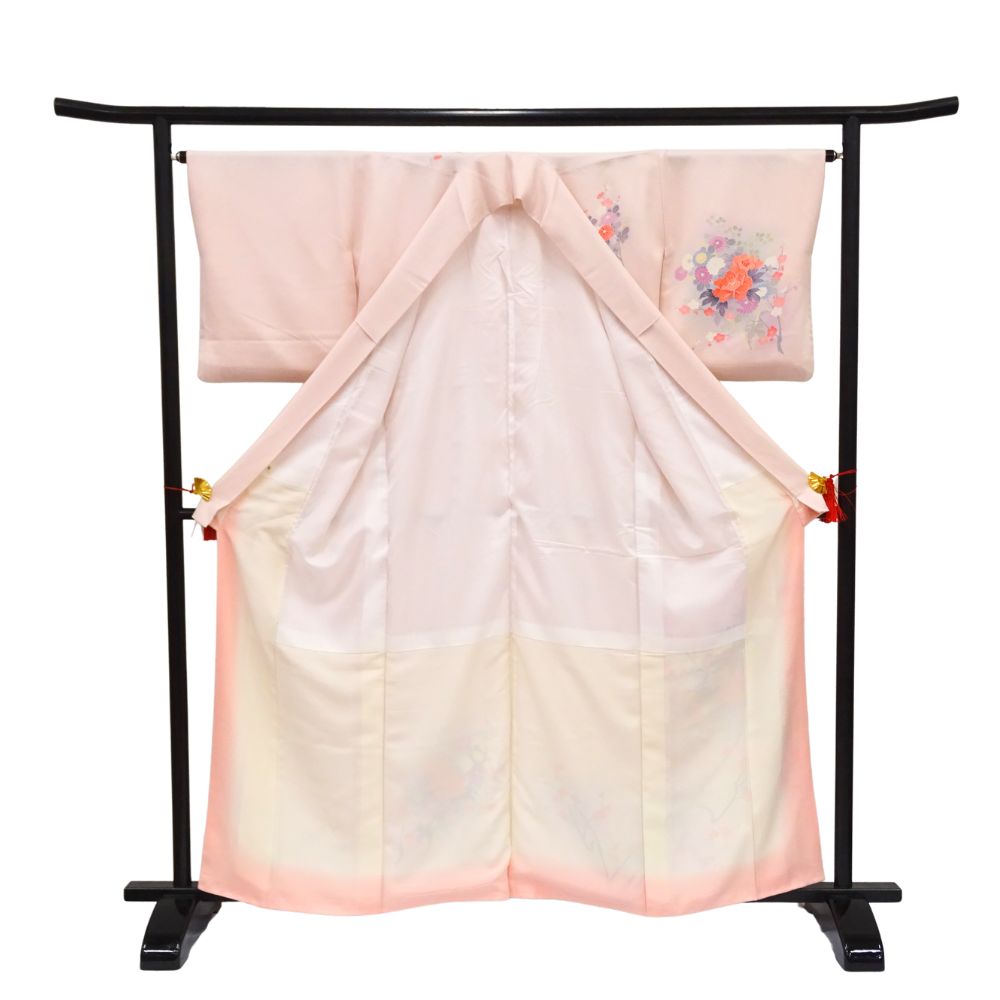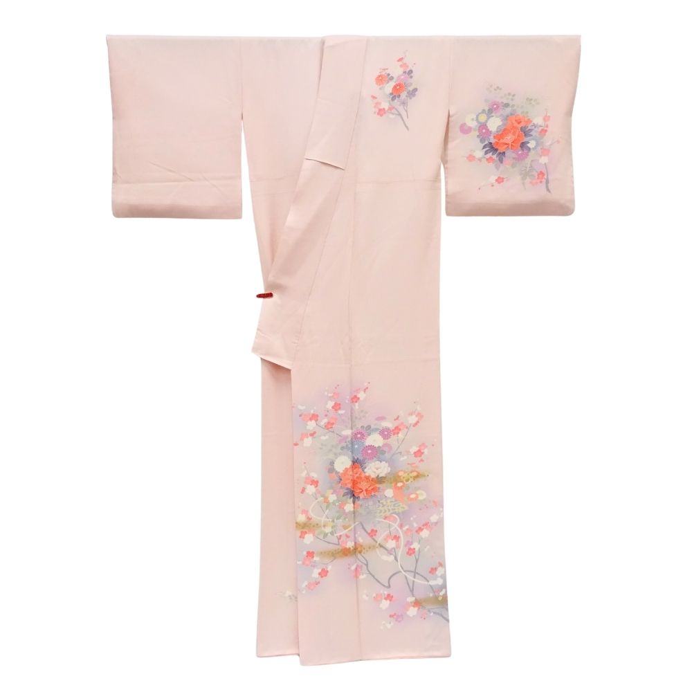 附下 袷 正絹 リユース 中古 淡いピンク/豪華な手描き友禅風 花束文様 1030-04021