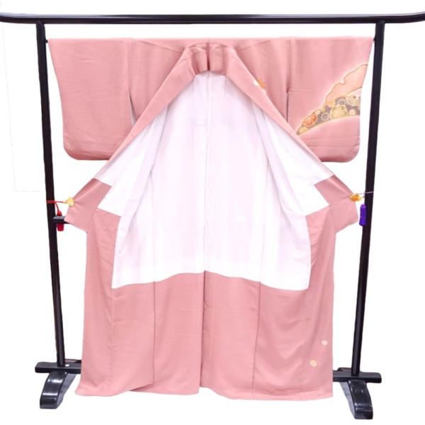 八掛にもさりげなく小さな花模様が描かれており、細部までこだわりが感じられる一着です。