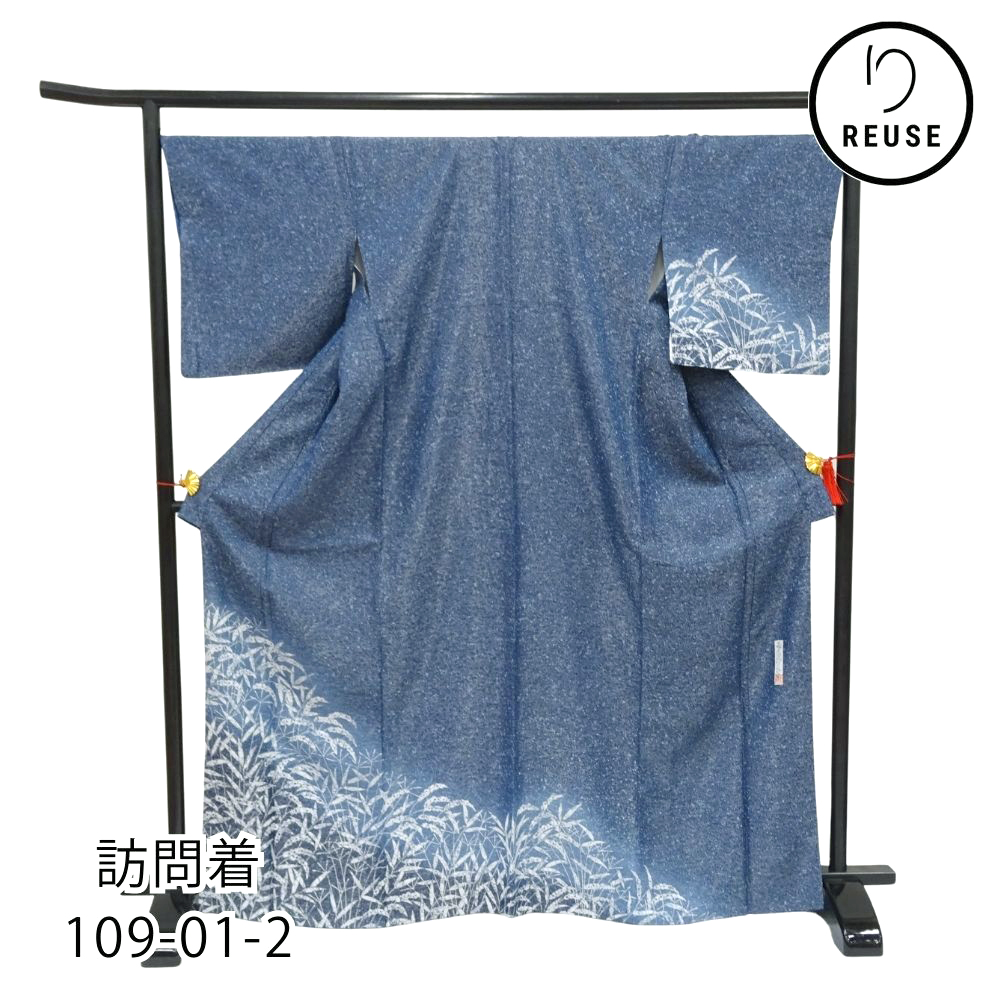 訪問着 袷 正絹 リユース 中古 臈纈染(ろうけつ染め)幻想的な雪笹文様 109-01-2(8050-00491)