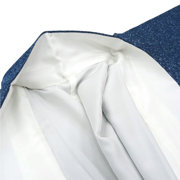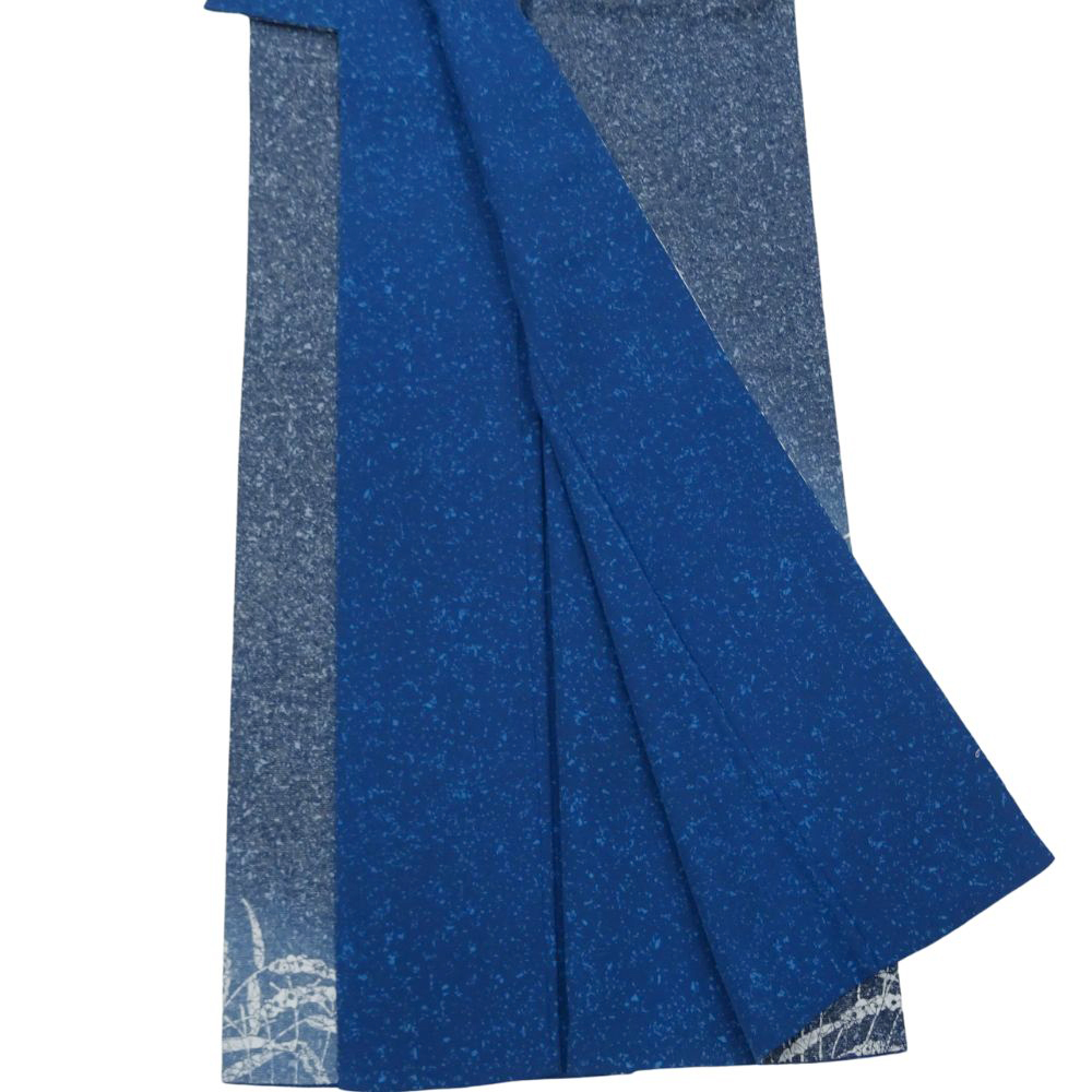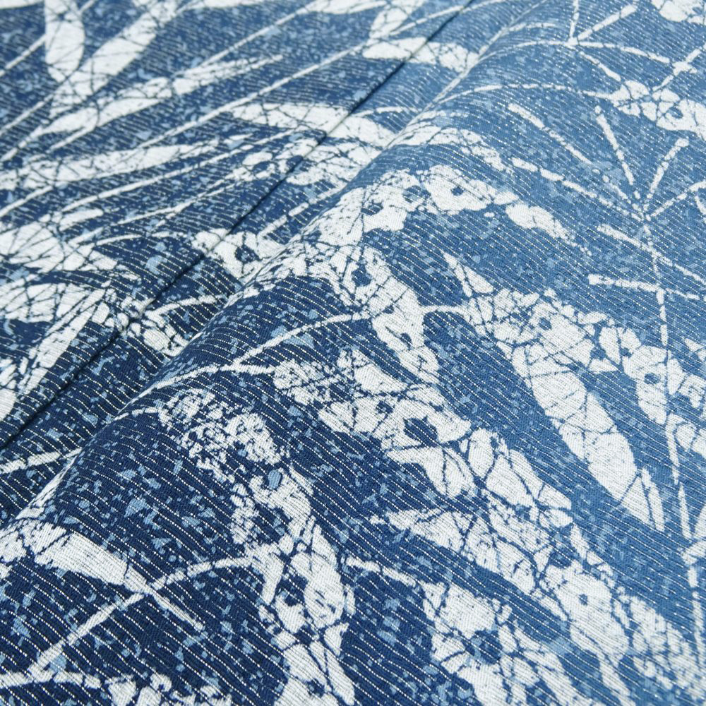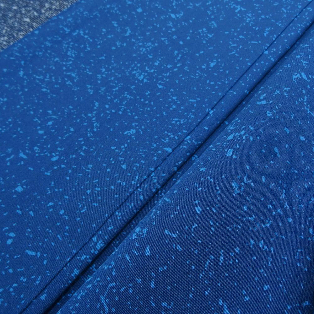 深く落ち着いたインディゴブルーに、白の細かい飛び柄が全体に入った、まるでデニム生地のようなモダンな雰囲気を持つ生地です。