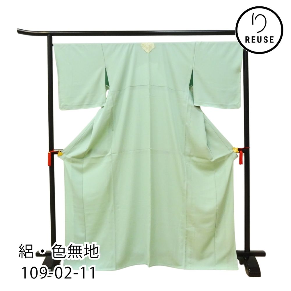 絽・色無地 正絹 リユース 中古 薄緑色 一つ紋付 109-02-11 (8050-00506)