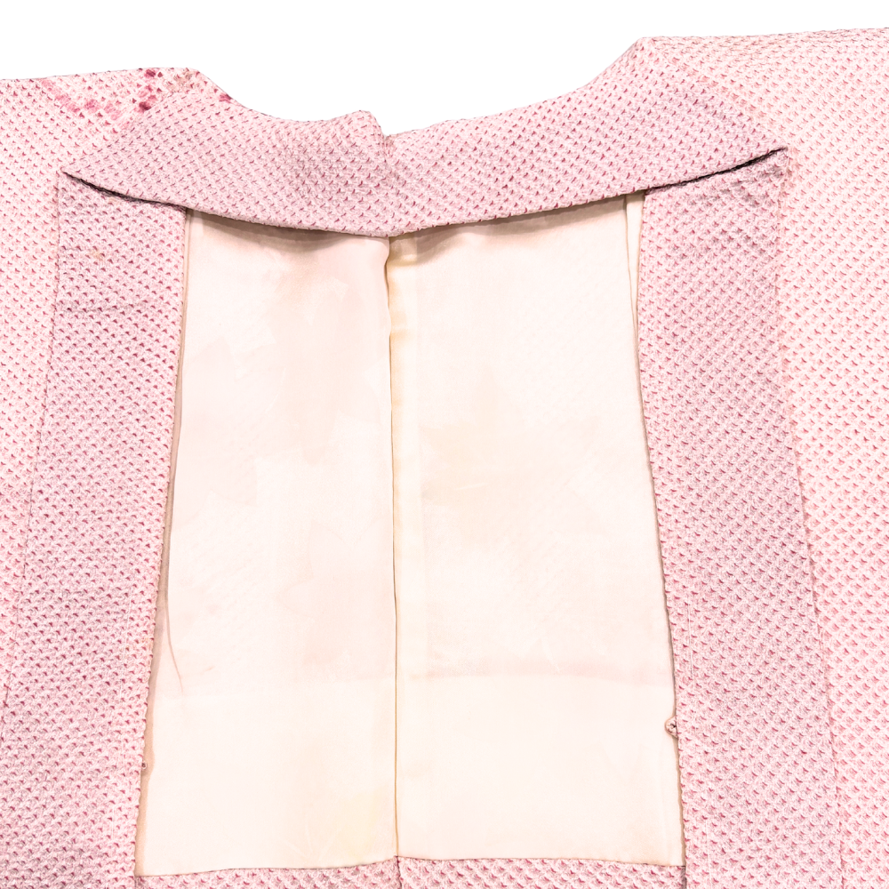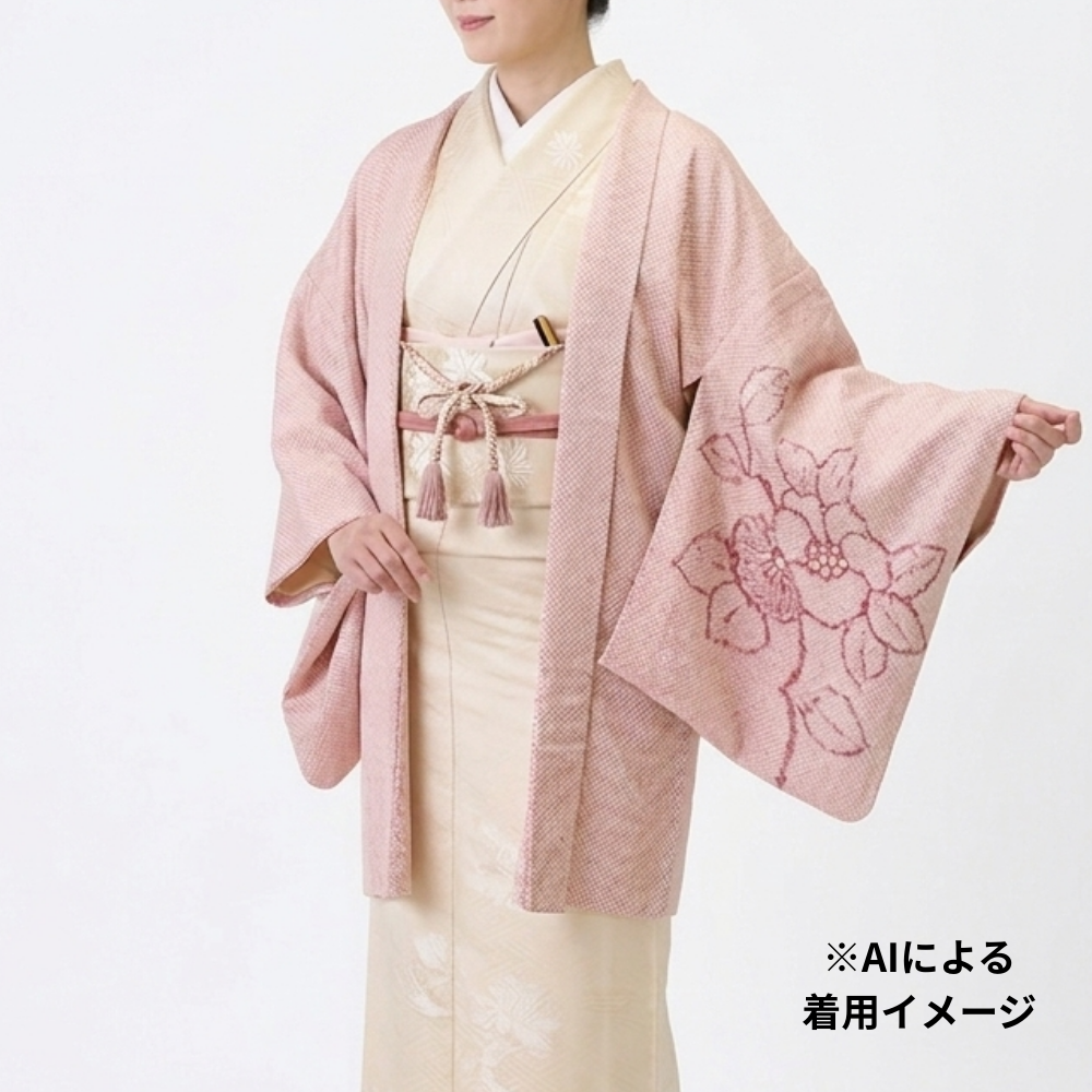 羽織 袷 正絹 リユース 中古 鹿の子絞り 花柄 ピンク 109-02-13