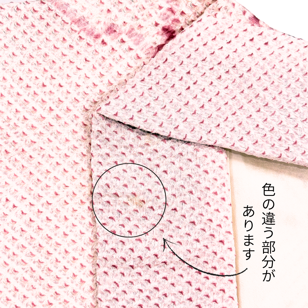 一部にわずかな変色が見受けられますが、絞りの凹凸や柄に紛れるため、着用時にはほとんど目立ちません。