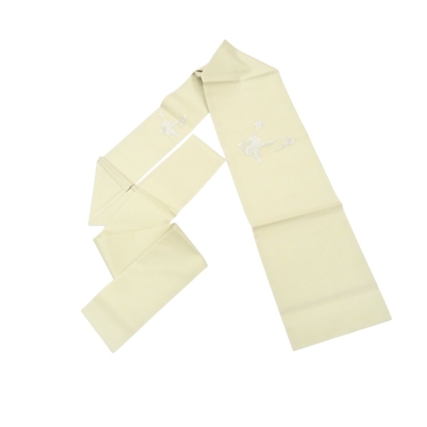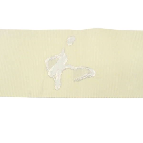 絽 名古屋帯 リユース 中古 正絹 オフホワイト 銀糸 「和」 109-02-4(8050-00499)
