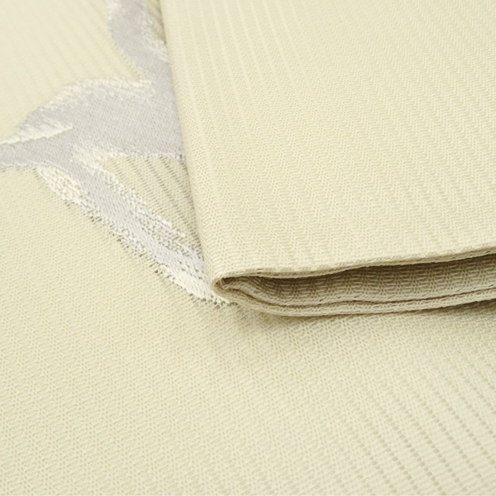 清潔感あふれるオフホワイトの地に、銀糸を用いた抽象的な文様がさりげなく輝く、大変上品な一品です。