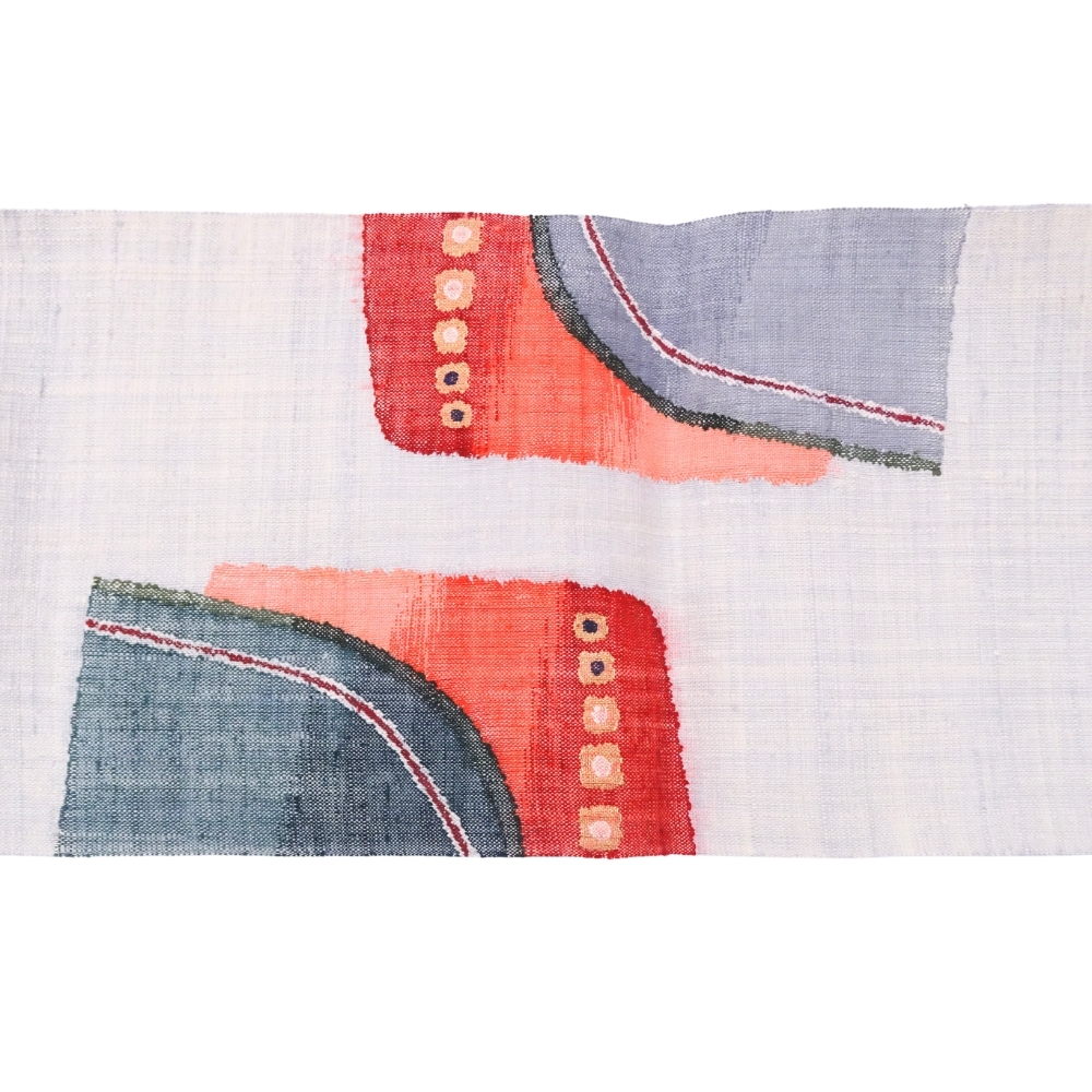 すくい織り 名古屋帯 正絹 リユース 中古 抽象モダン柄 白地×多色 109-02-5 (8050-00500)