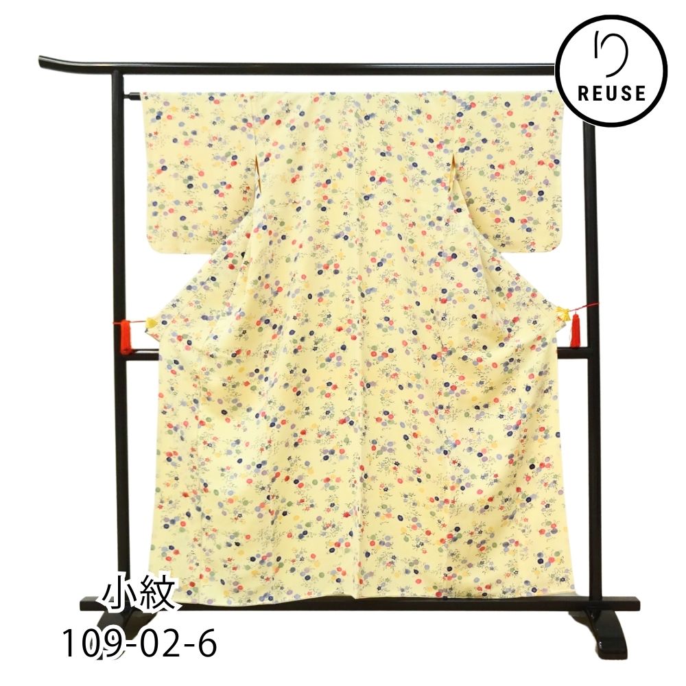 小紋 正絹 リユース 中古 クリーム色 彩り豊かな花々 109-02-6 (8050-00501)