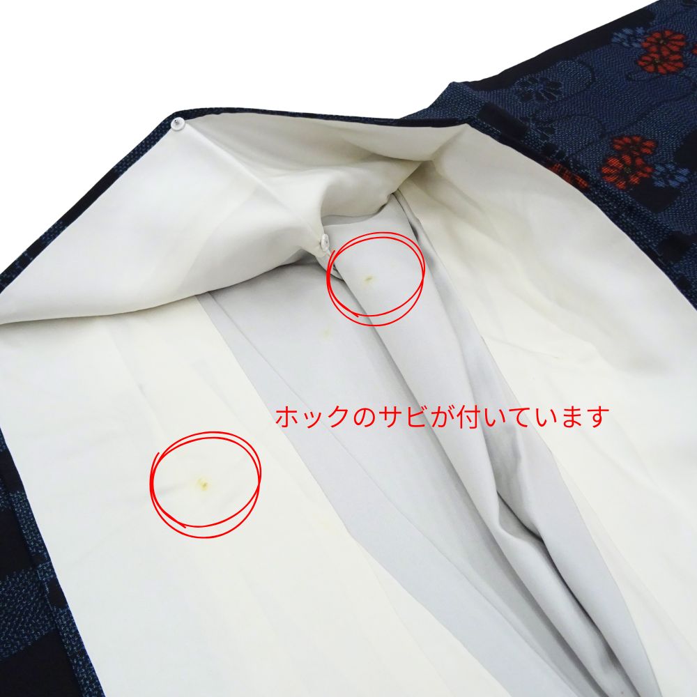 商品の状態:【A】美品・・畳んで保管している間に衿裏のホックのサビが裏地にうつってしまっていますが、それ以外はとても綺麗な商品です。