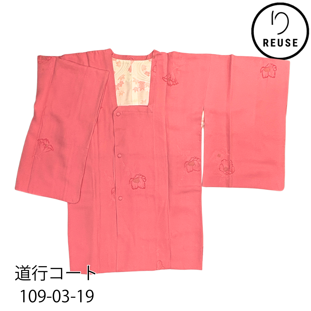 道行コート 袷 正絹 リユース 中古 ピンク 地紋 花丸文 縮緬 卒業式 入学式 和装コート 着物コート 109-03-19