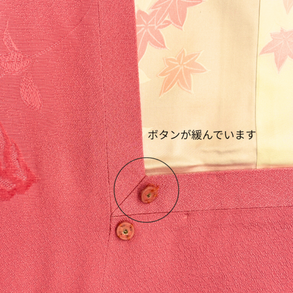 現状でのお渡しとなりますので、気になる場合はご着用前に軽く縫い止めていただくことをお勧めいたします。