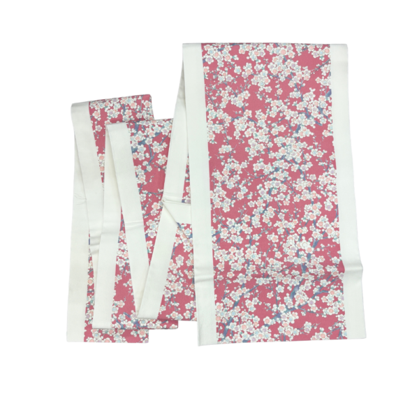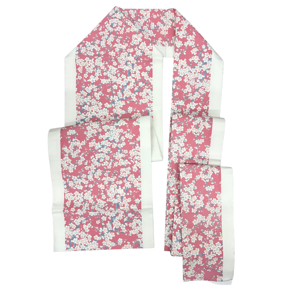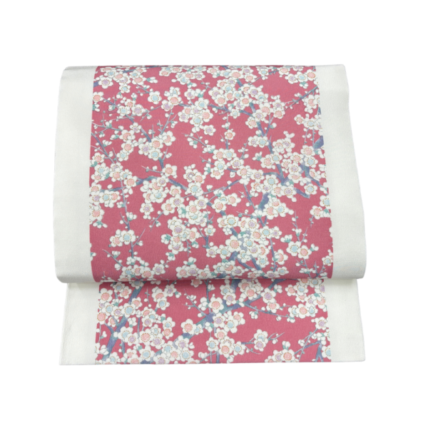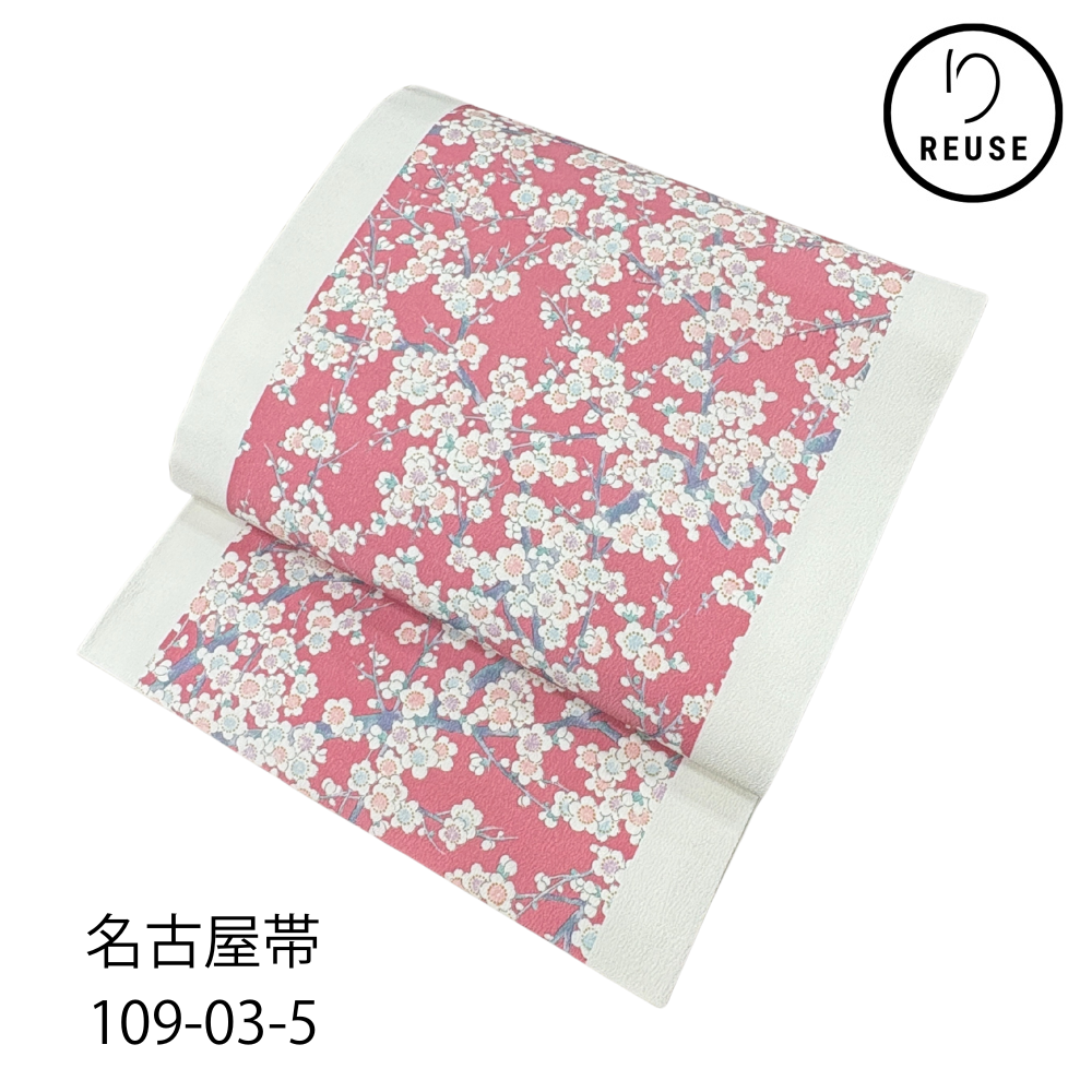 名古屋帯 正絹 リユース 中古 枝垂れ梅 ピンク×白地 109-03-5(8050-00515)