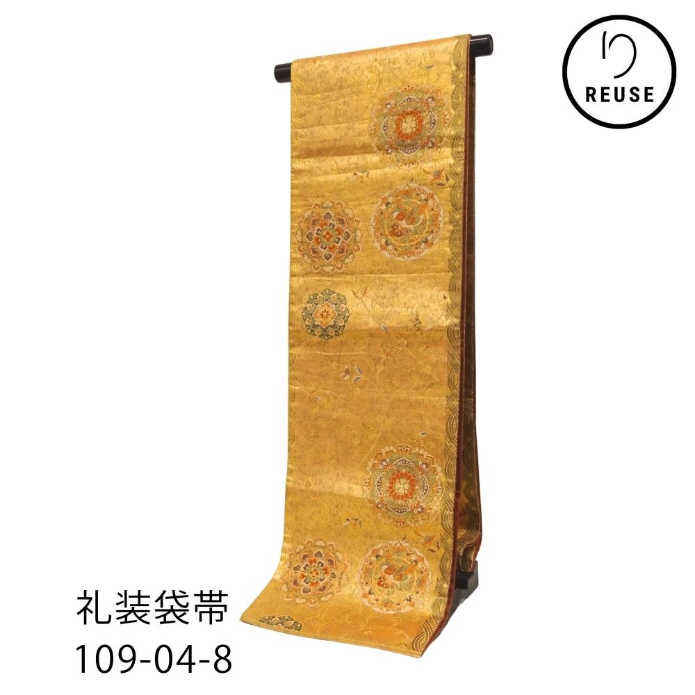 袋帯 礼装用 正絹 リユース 中古 金糸 鳳凰 華文 唐草109-04-8(8050-00542)