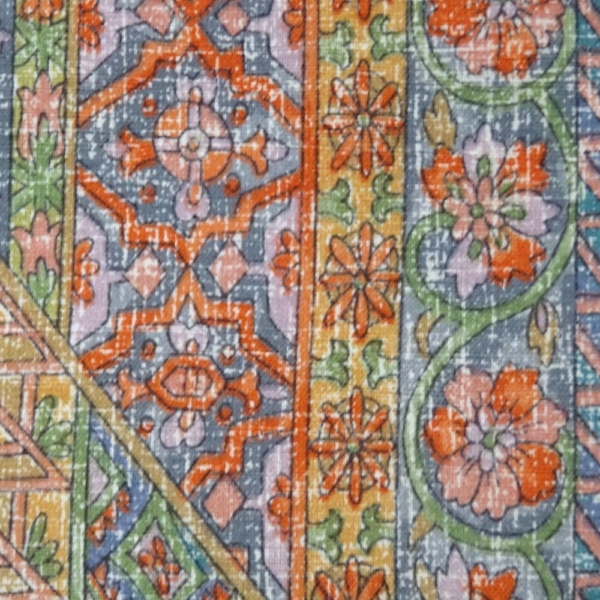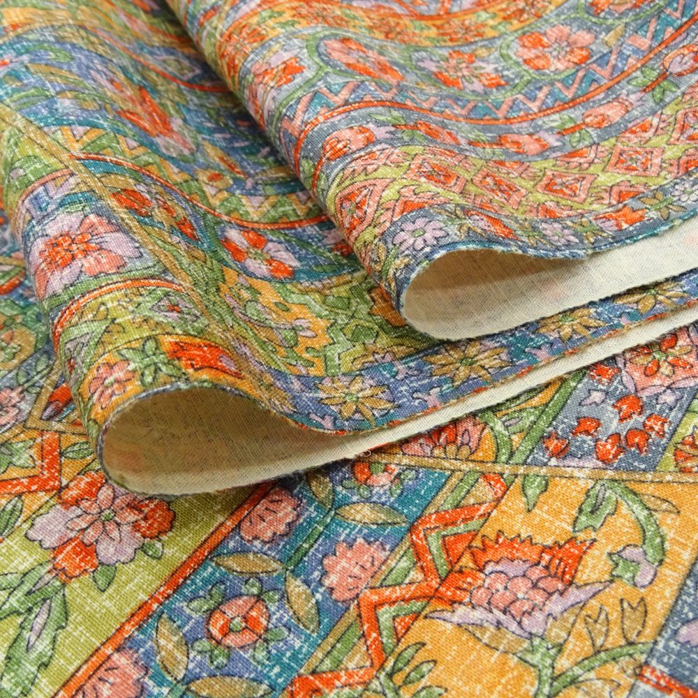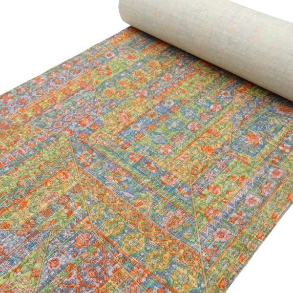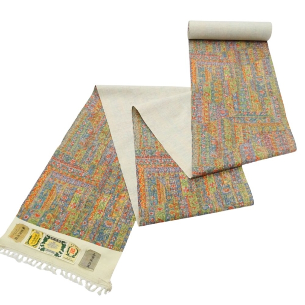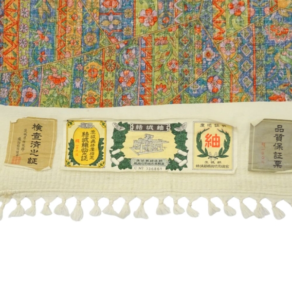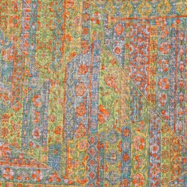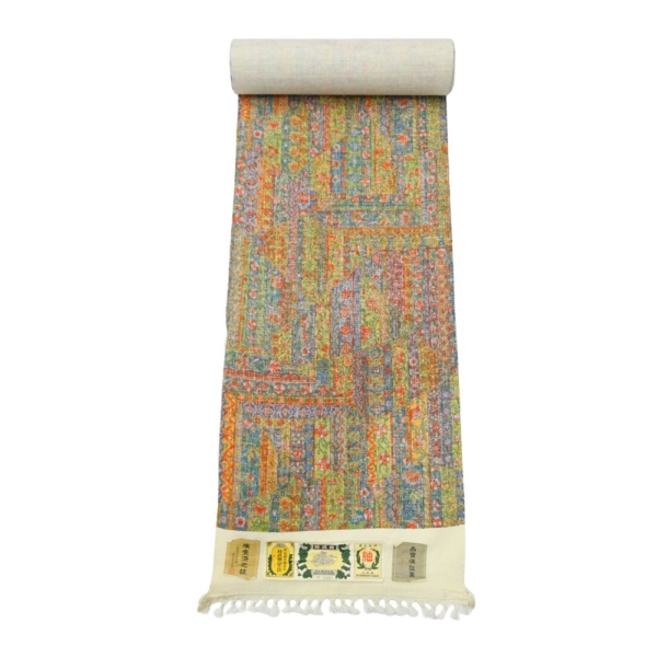 結城紬反物 正絹 リユース 中古 染め小紋 縦縞更紗/パッチワーク柄 41-0239(8050-00)