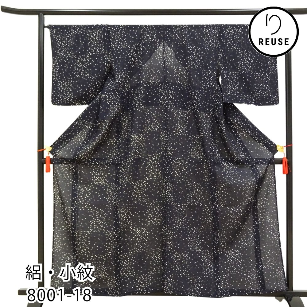 小紋 絽 正絹 リユース 中古 黒 幾何学模様 市松 8001-18 粋 モダン 街着 お出かけ 普段着