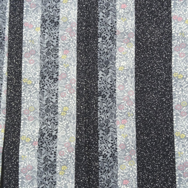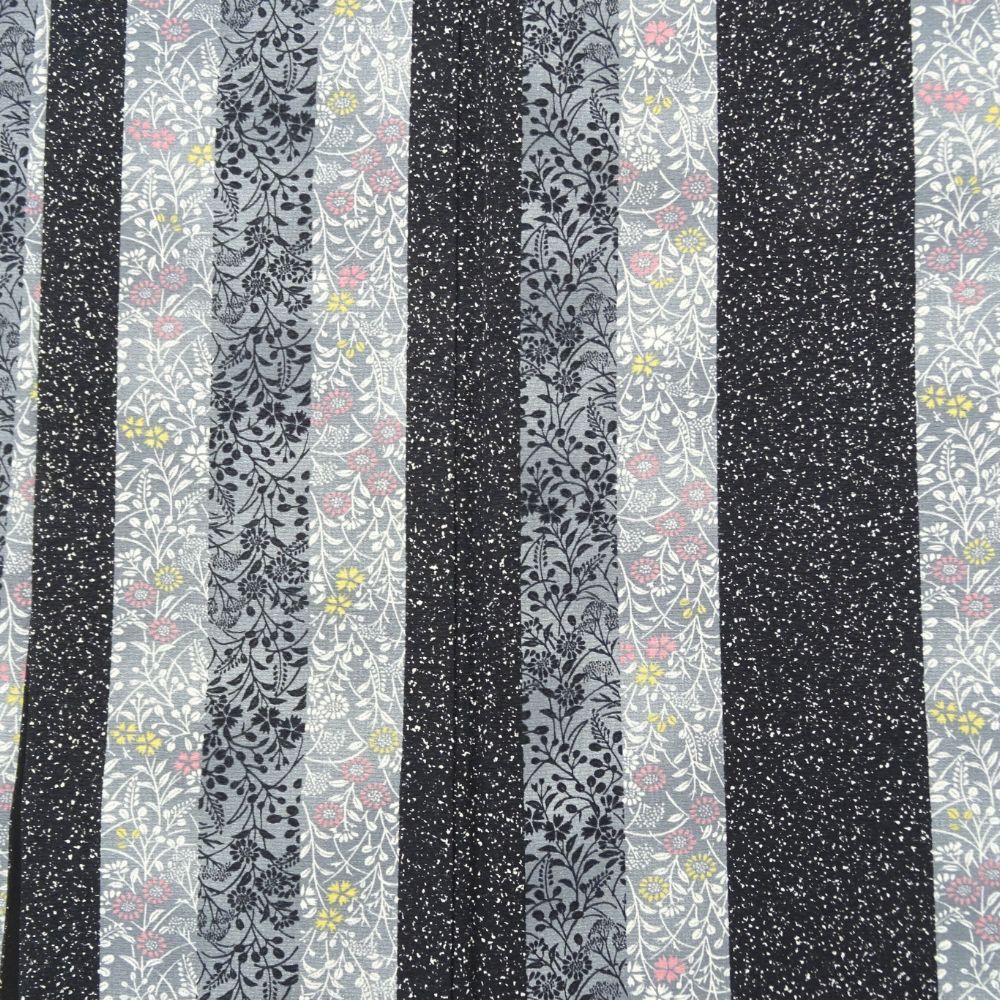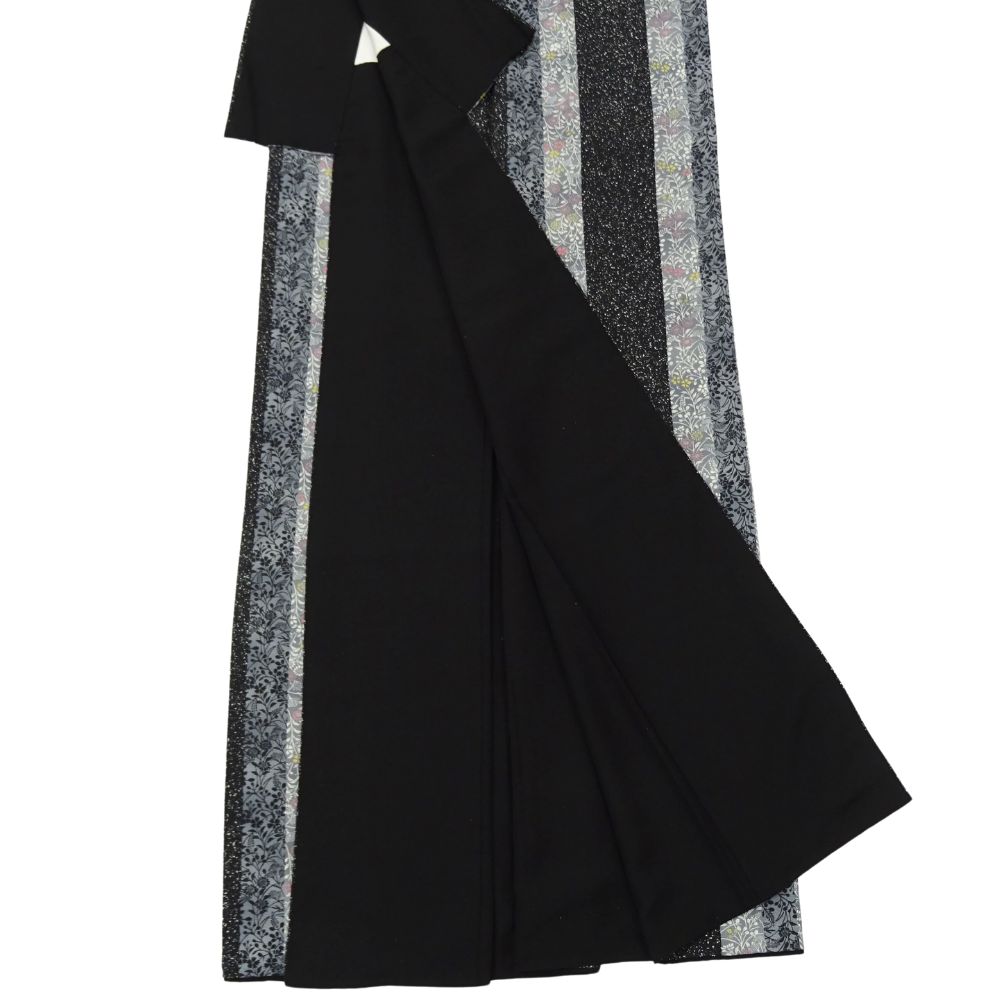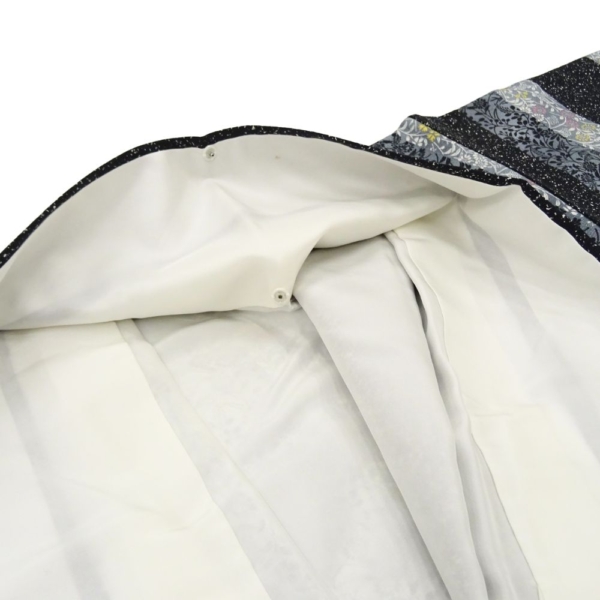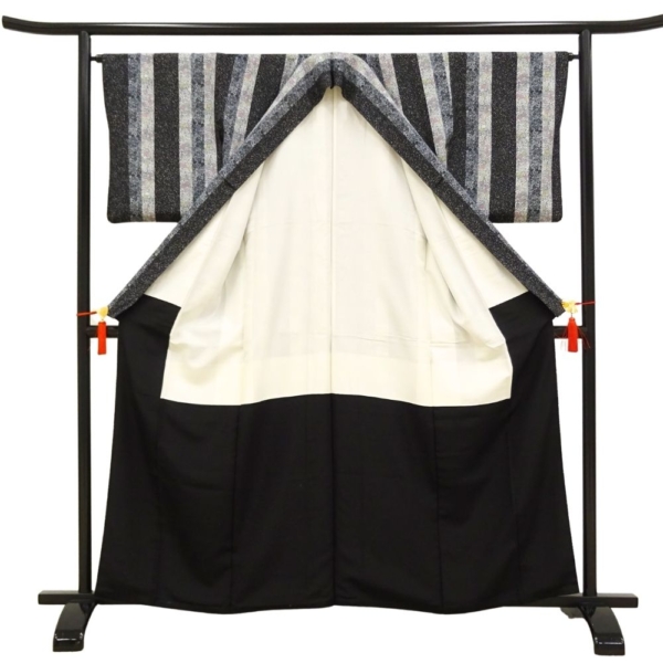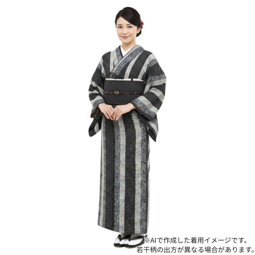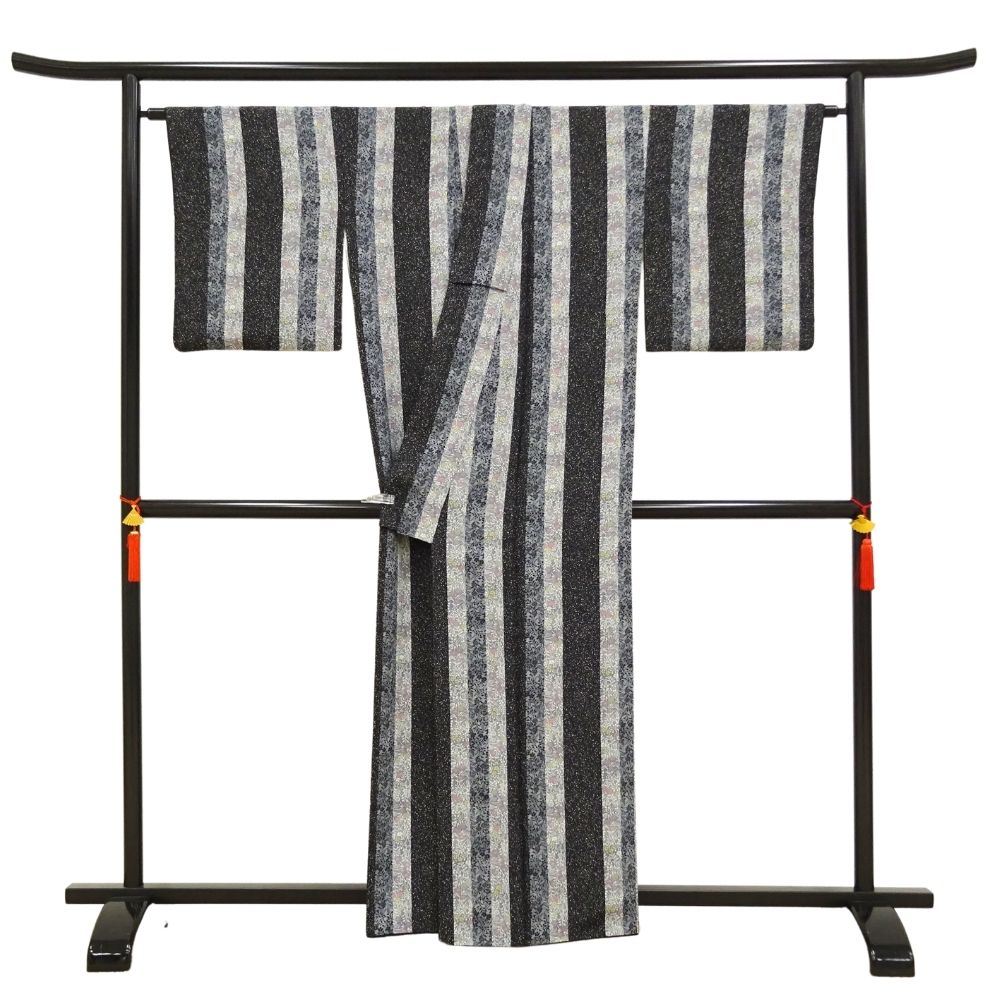 小紋 正絹 リユース 中古 袷 縦縞に小花模様 モノトーン 黒 グレー8001-22 モダン カジュアル セミフォーマル 普段着