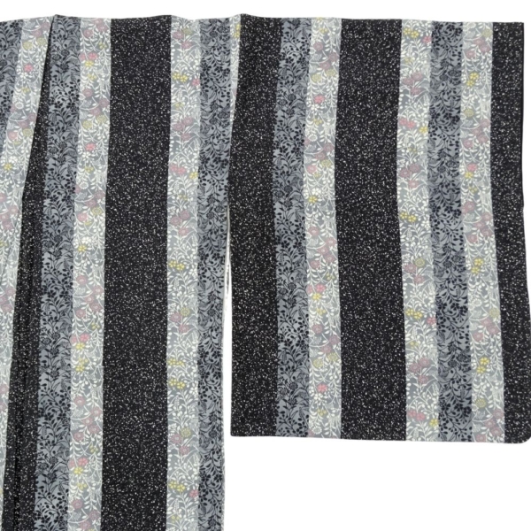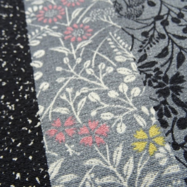 よく見ると縞の中に繊細な小花柄や微細な文様が施されており、奥行きのある高級感を演出します。