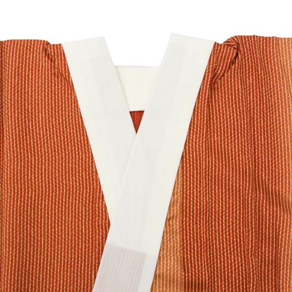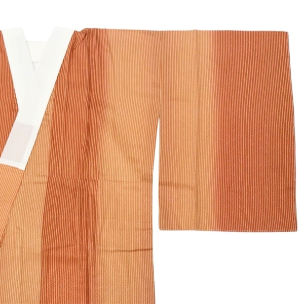 長襦袢 正絹 リユース 中古 オレンジ 茶系 縦縞 8001-27 えもん抜き・半衿付き グラデーション 粋 お洒落