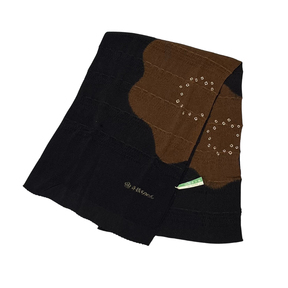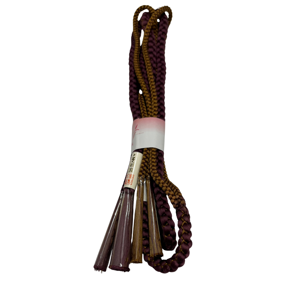 帯締め・帯揚げセット 正絹 丹後ちりめん 絞り染め こげ茶×茶 手組紐 紫×金茶 リユース 未使用品 中古 8001-39 ★