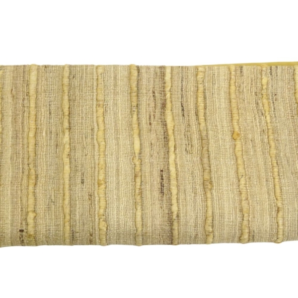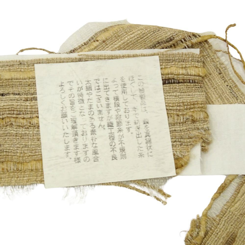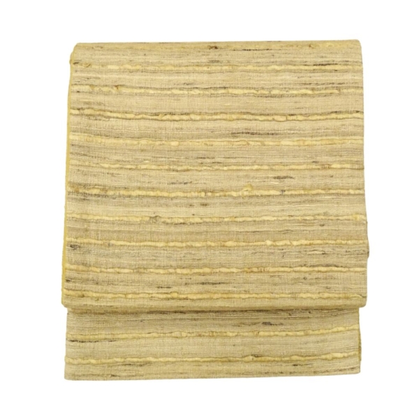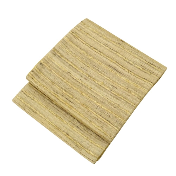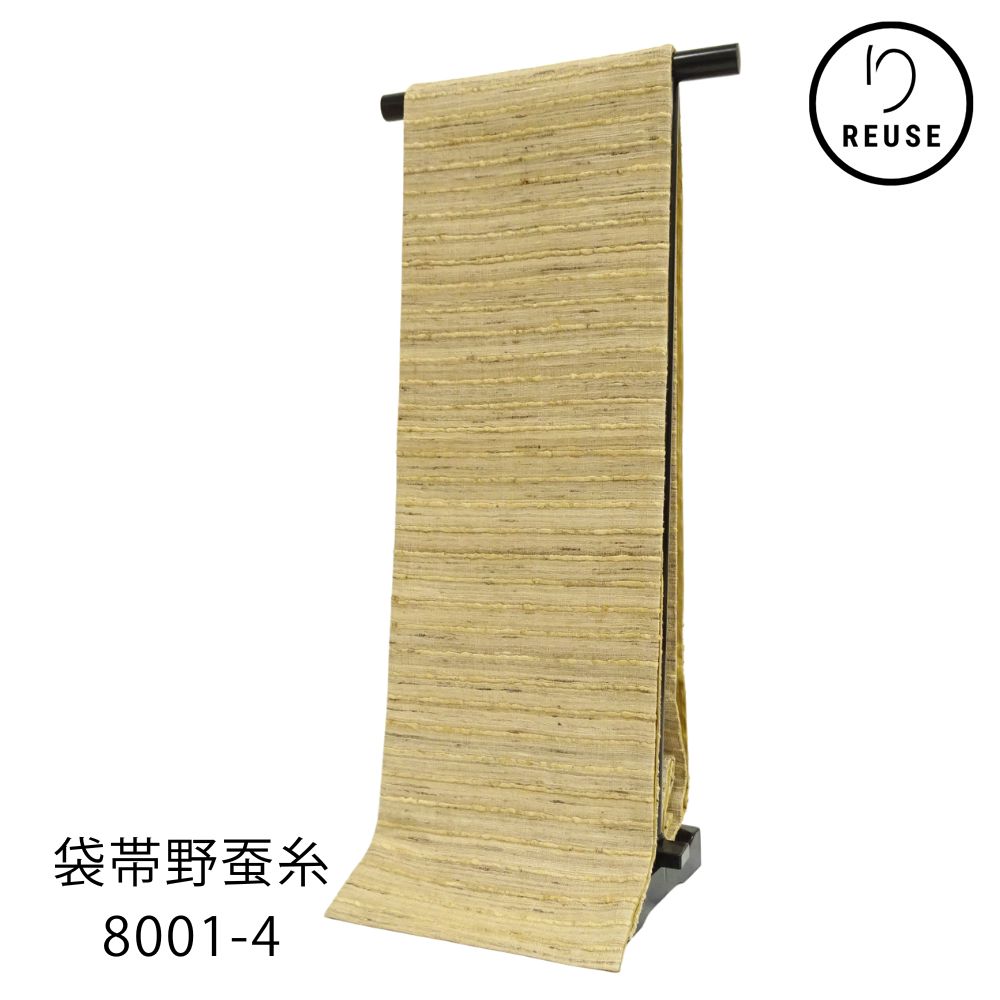 袋帯 野蚕糸 正絹 リユース 未使用 希少 逸品 野蚕糸 全通 手織りベージュ 横段文様 8001-4(8050-00987) 証紙付 洒落袋帯 着物