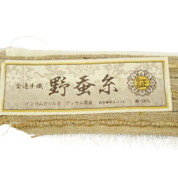 手仕事の極みとも言える、アッサム原産「ムガシルク」を使用した野蚕糸の袋帯です。