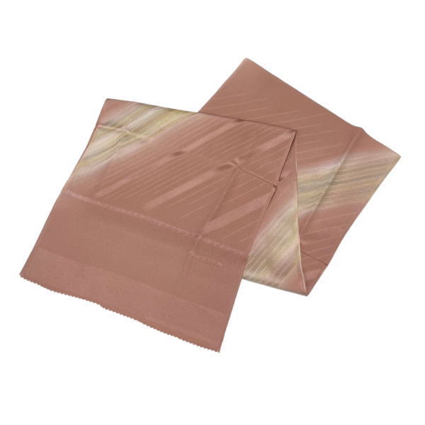 落ち着いたくすみローズを基調に、金糸や若草色のぼかしが縞状に入ったモダンなデザイン。