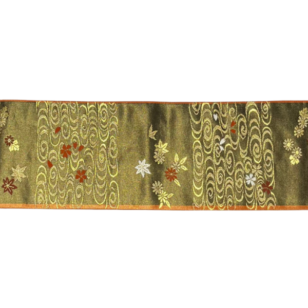 半巾帯 最高級小袋帯 西陣織 唐織 正絹 金糸輝く四季花と観世水 リバーシブル リユース 中古 8003-1 ★
