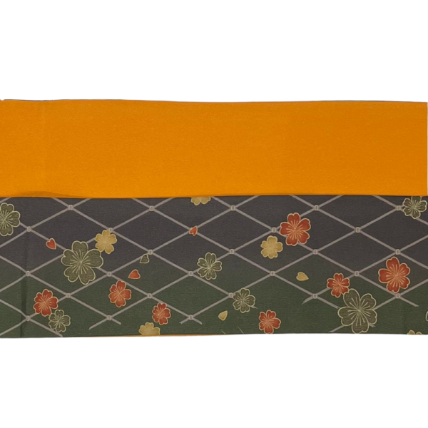 裏面はパッと目を引く鮮やかな山吹色になっており、結び方によって裏地を覗かせることで、コーディネートに力強いアクセントを加えることができます。