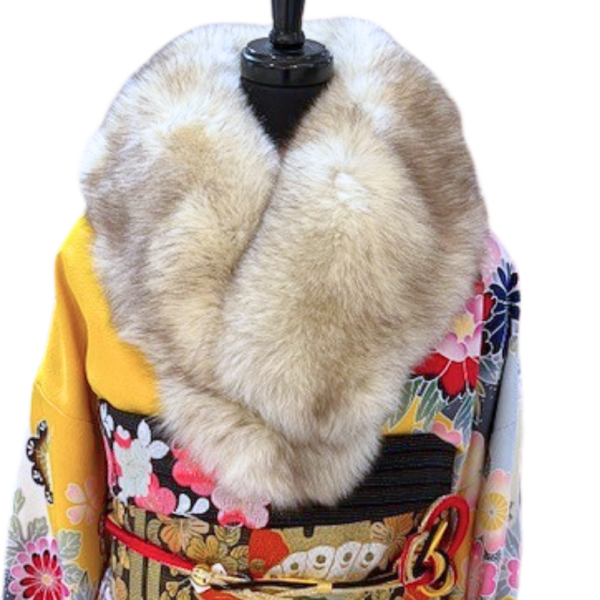 保温性にも優れているため、成人式など冬のイベントに最適です。首筋から肩を包み込むワイドなデザインで、防寒性とゴージャスなシルエットを両立しています。