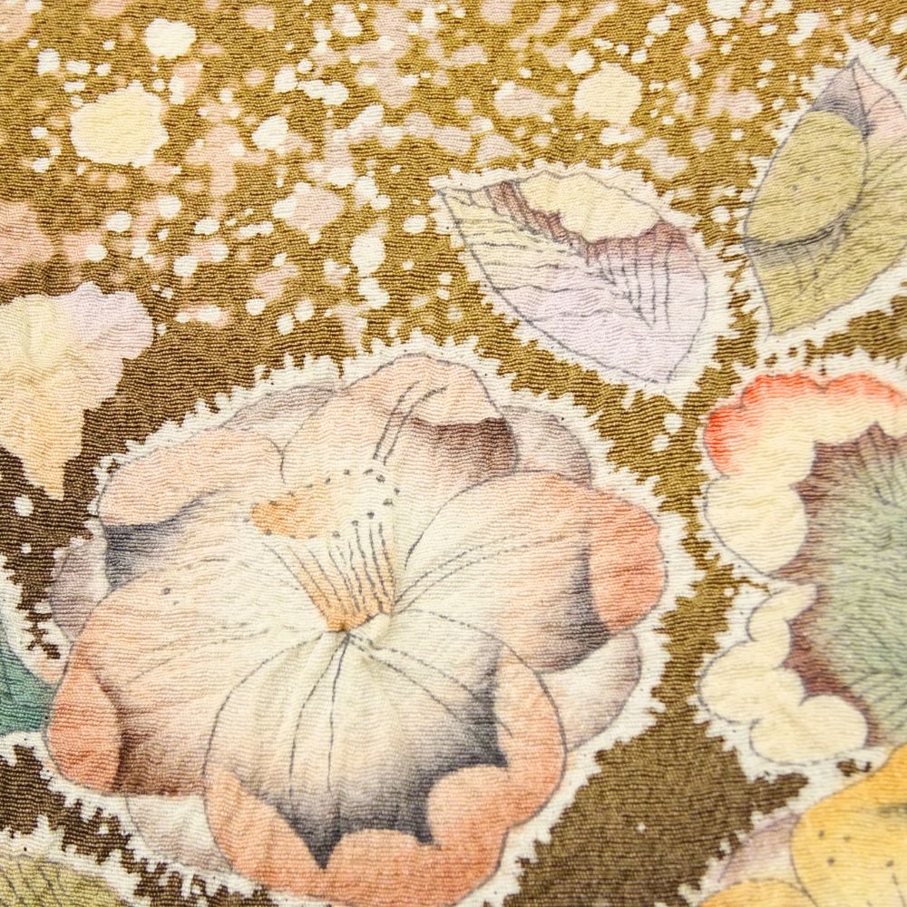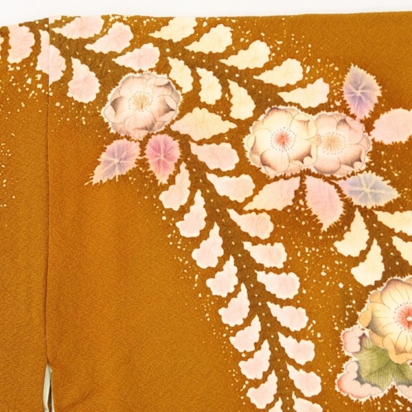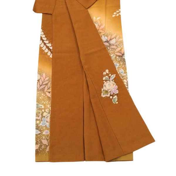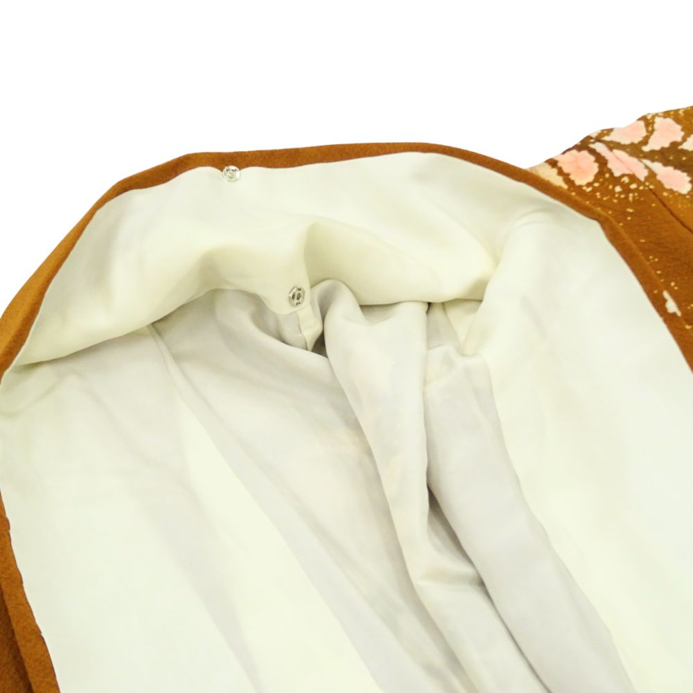 訪問着 正絹 リユース 中古 袷 辻が花 落款有 金茶色 8008-1(8050-01000) 縮緬 逸品 準礼装 フォーマル 結婚式 お茶会 七五三