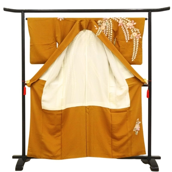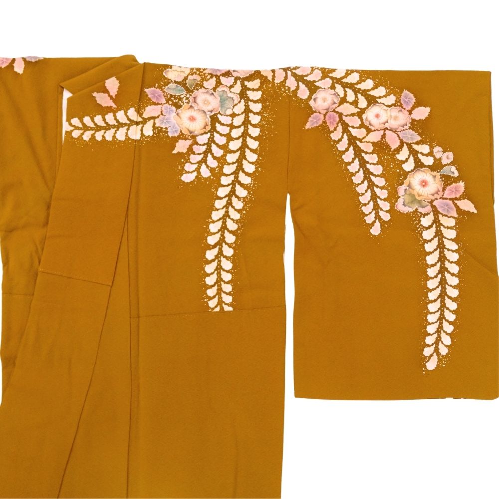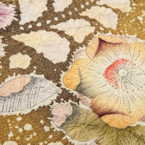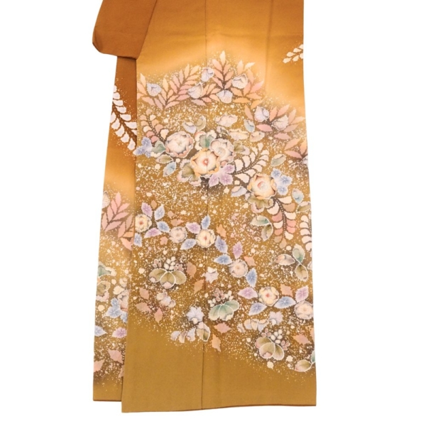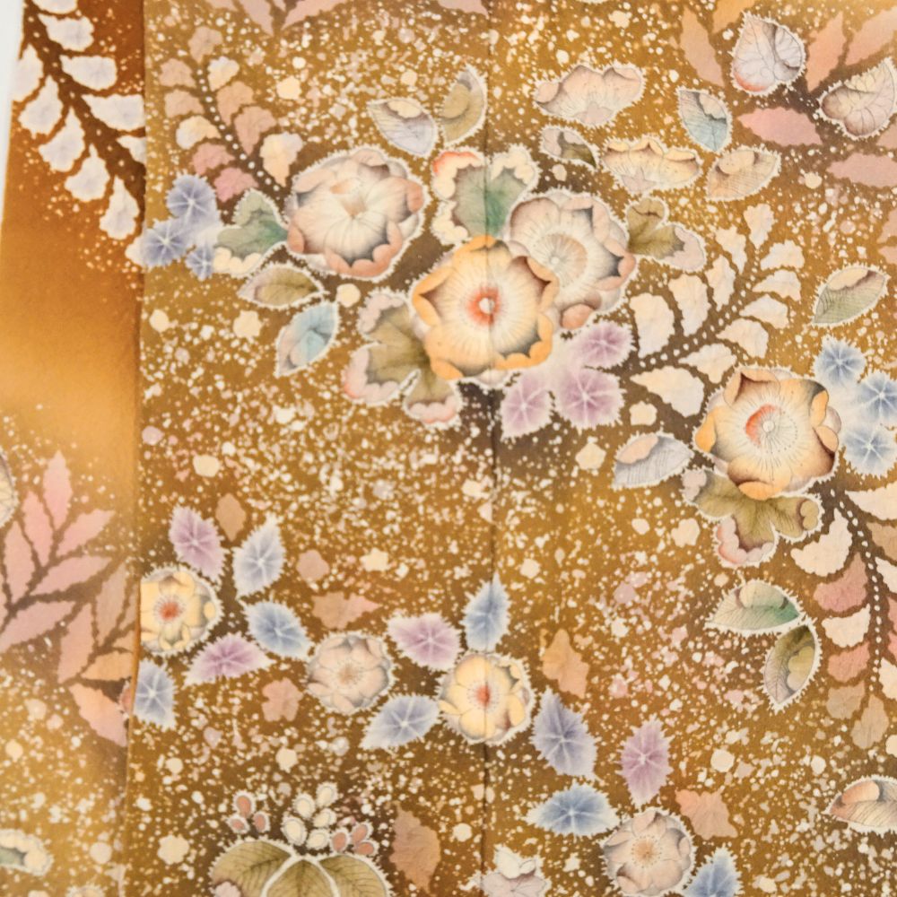 落ち着きのある上品な金茶色に、幻想的な辻が花が咲き誇る、大変美しい訪問着です。