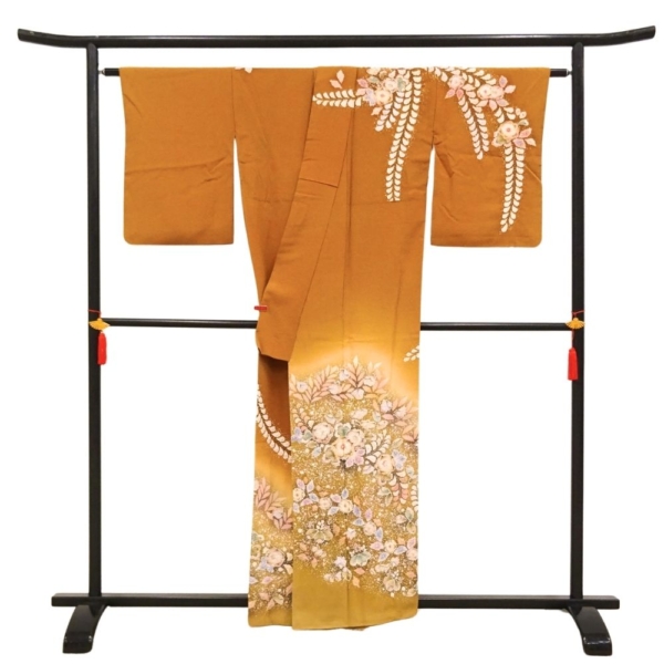 裾にかけて明るいマスタード色へのぼかしが入り、お顔周りを明るく、足元を華やかに見せてくれます。