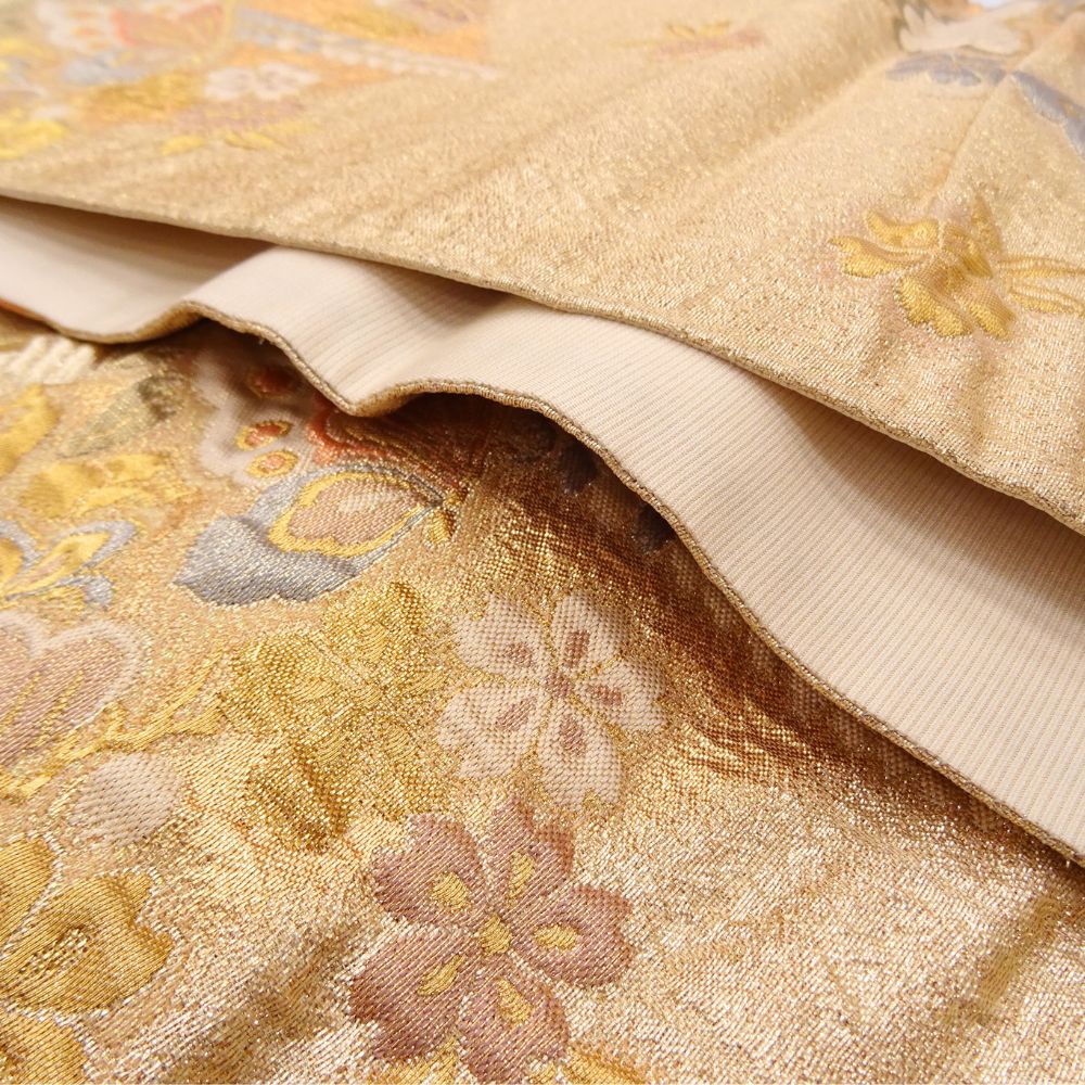 礼装用袋帯 正絹 リユース 西陣織 金糸 唐織 蝶 松 梅 吉祥文様 ゴールド 8008-6(8050-01001) 六通柄 振袖 訪問着 礼装用 フォーマル